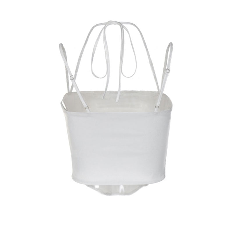 Glossy Curved Hem Spaghetti Strap Corset Halter Crop Top - White