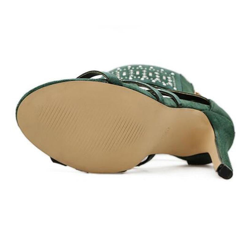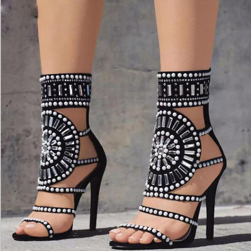 Goddess Beaded Ankle Heeled Sandal