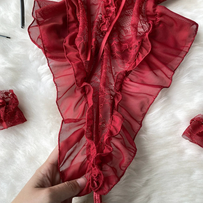 These teddies offer a unique and romantic look with a modern twist. Crafted from soft polyester and detailed with lace and sheer ruffles, these teddies provide sophistication with a solid, yet feminine finish.