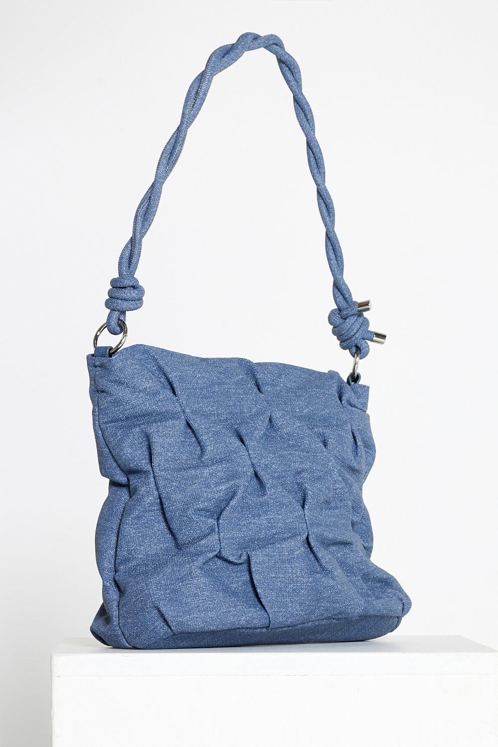 Introducing our elegantly crafted handbag, a perfect blend of contemporary style and timeless sophistication. This stunning piece features a unique gathered texture that adds depth and character to its smooth, beige exterior. The twisted rope handle, with its intricate knot details, not only provides a comfortable grip but also serves as a statement-making design element. Spacious yet compact, this bag is ideal for carrying all your essentials while maintaining a chic, minimalistic look. Perfect for day or night, it effortlessly elevates any outfit with its modern elegance.