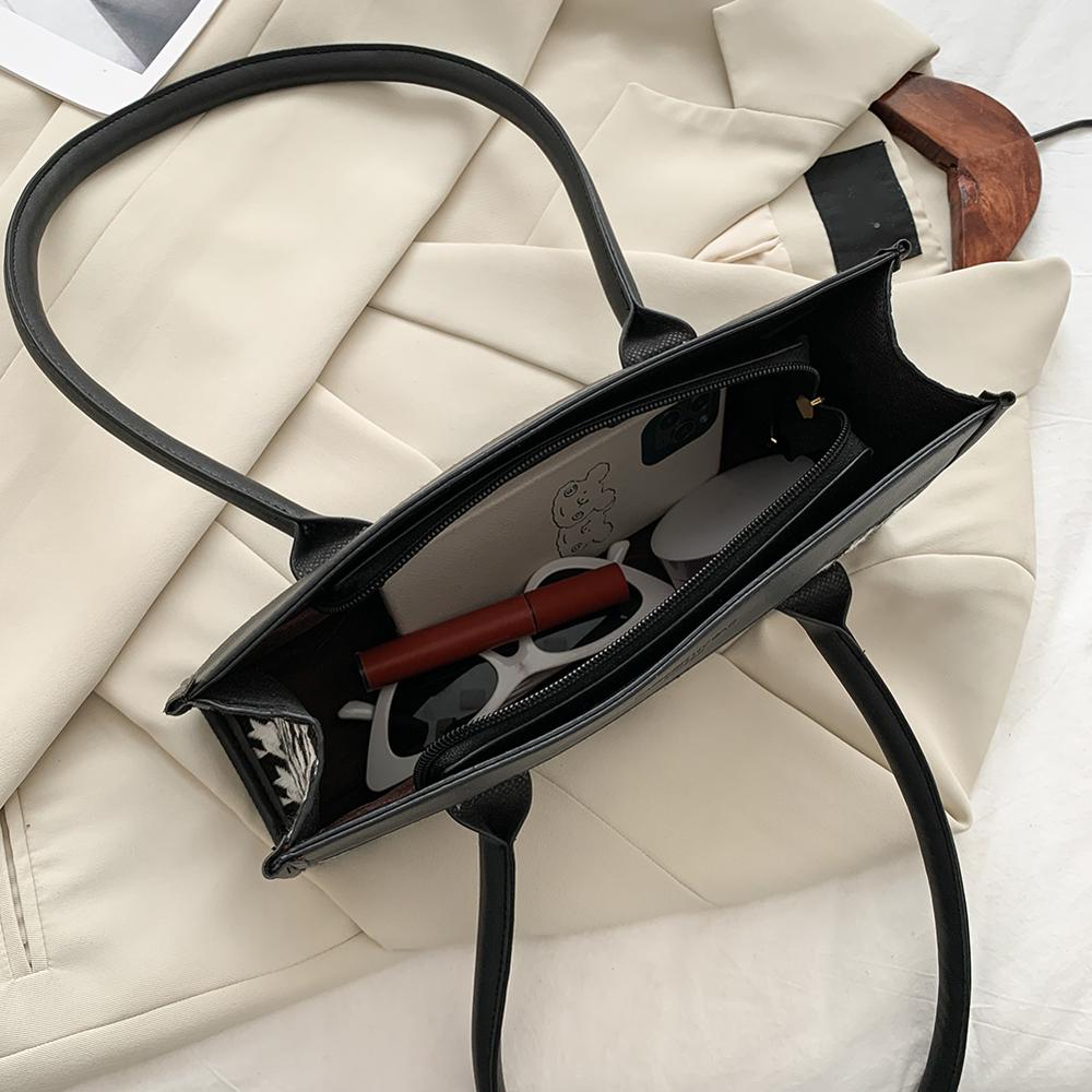 Houndstooth Patterned PU Shoulder Bag with Zipper Closure