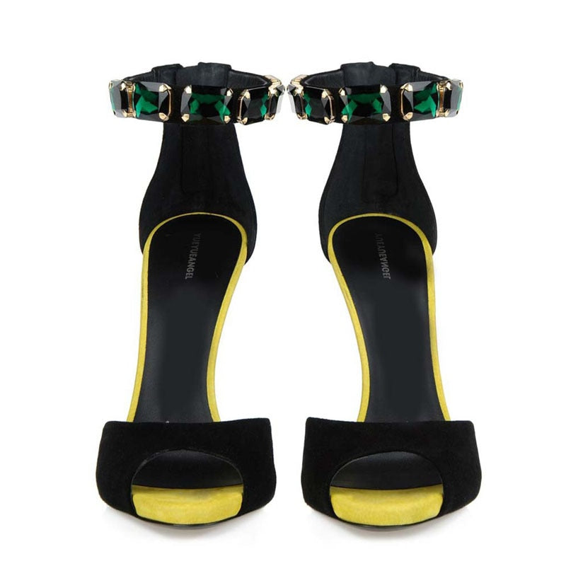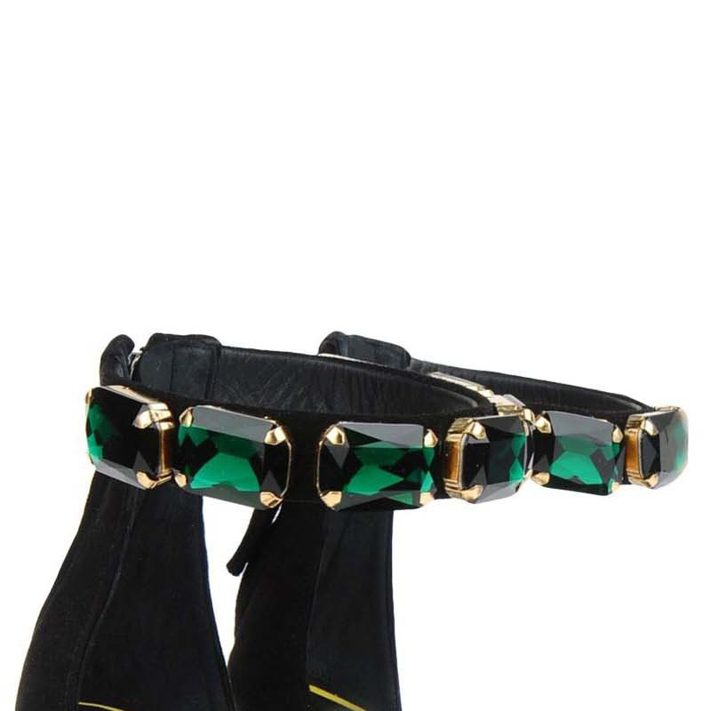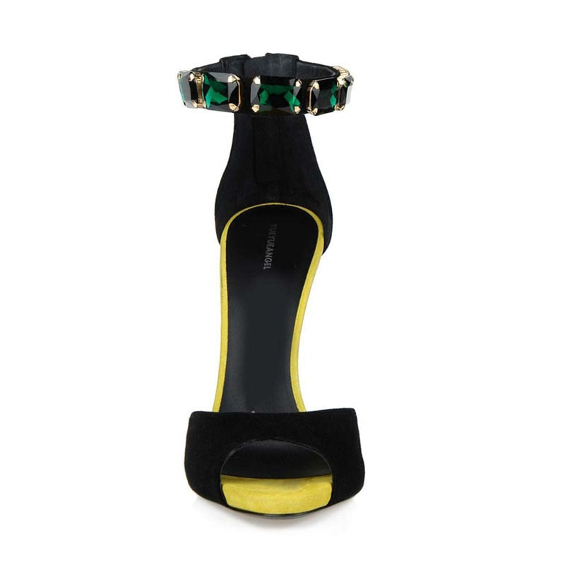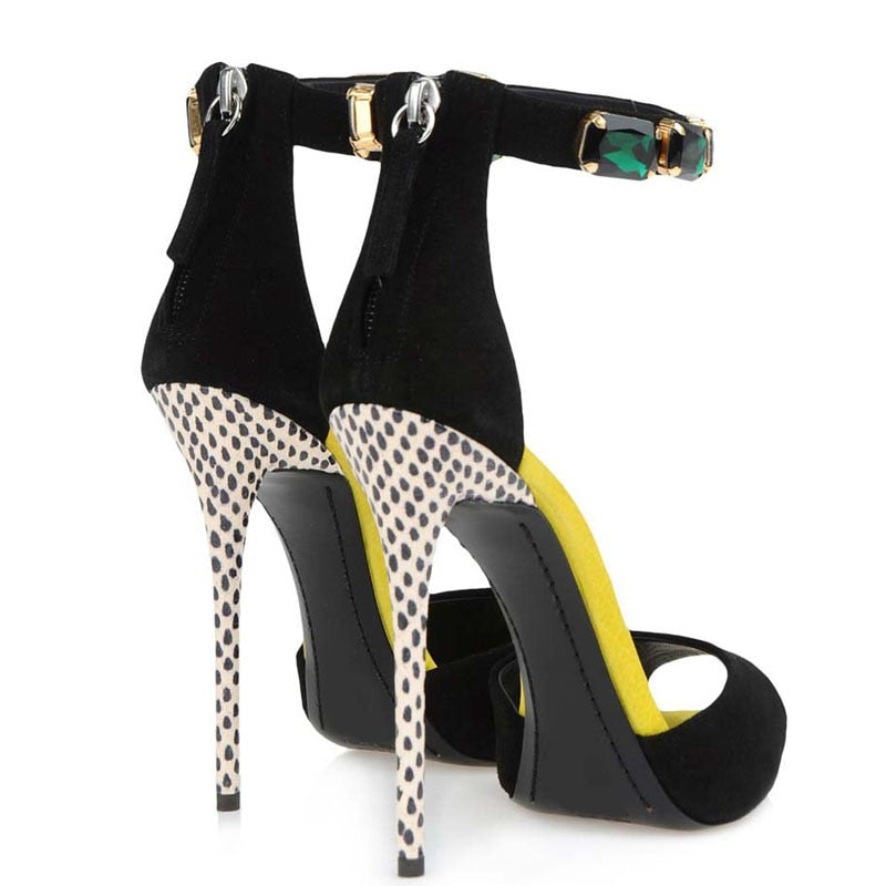 Flock With Crystal Decoration Ankle Strap Heeled Sandals