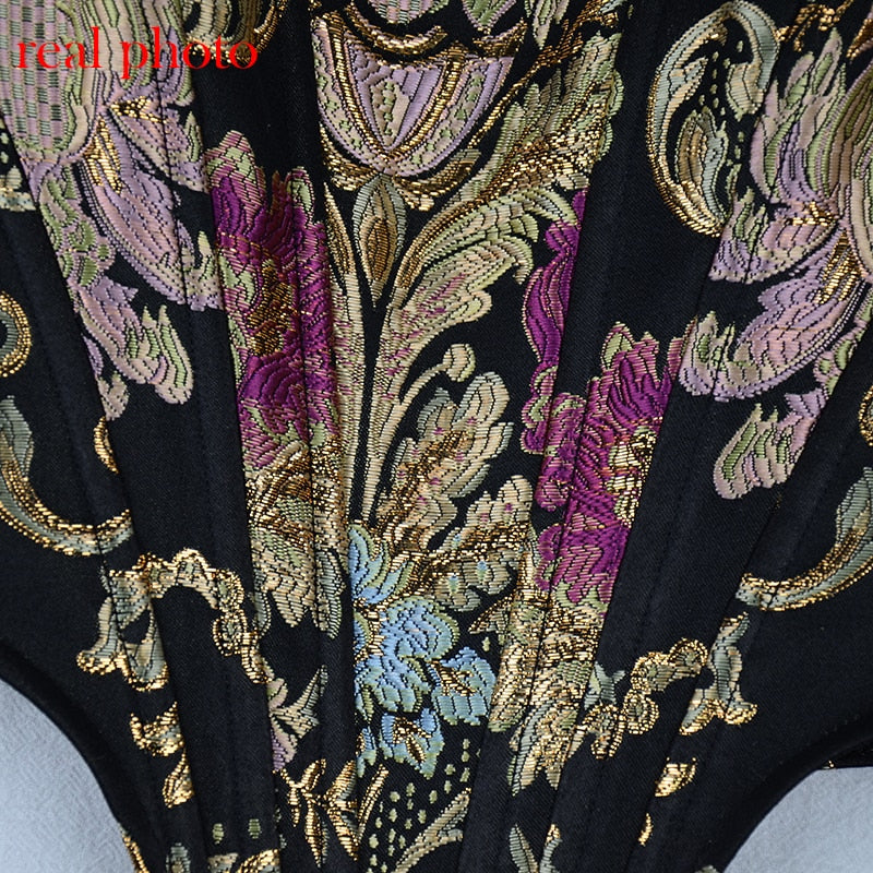 Highstreet Square Collar Jacquard Boned Puff Sleve Women Crop Top