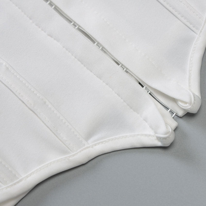 Hook And Eye Detail Curved Hem Lace Up Backless Halter Crop Top - White