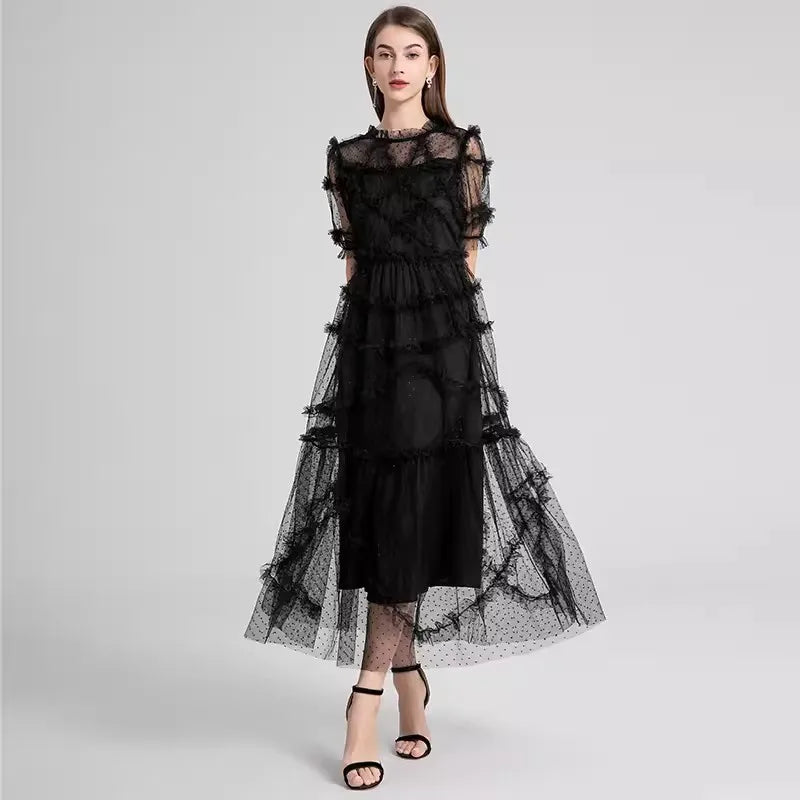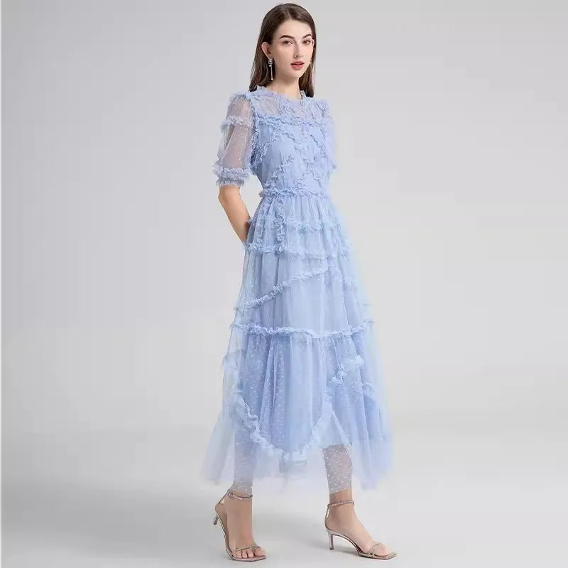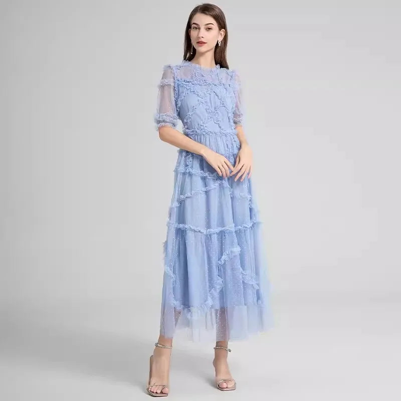 Be the center of attention in our Hummingbird Haze Midi Dress! With a regular fit and O-neckline, you'll feel comfortable and stylish. The tiered decoration adds a touch of femininity, while the mid-calf length is perfect for any occasion. Upgrade your wardrobe today!