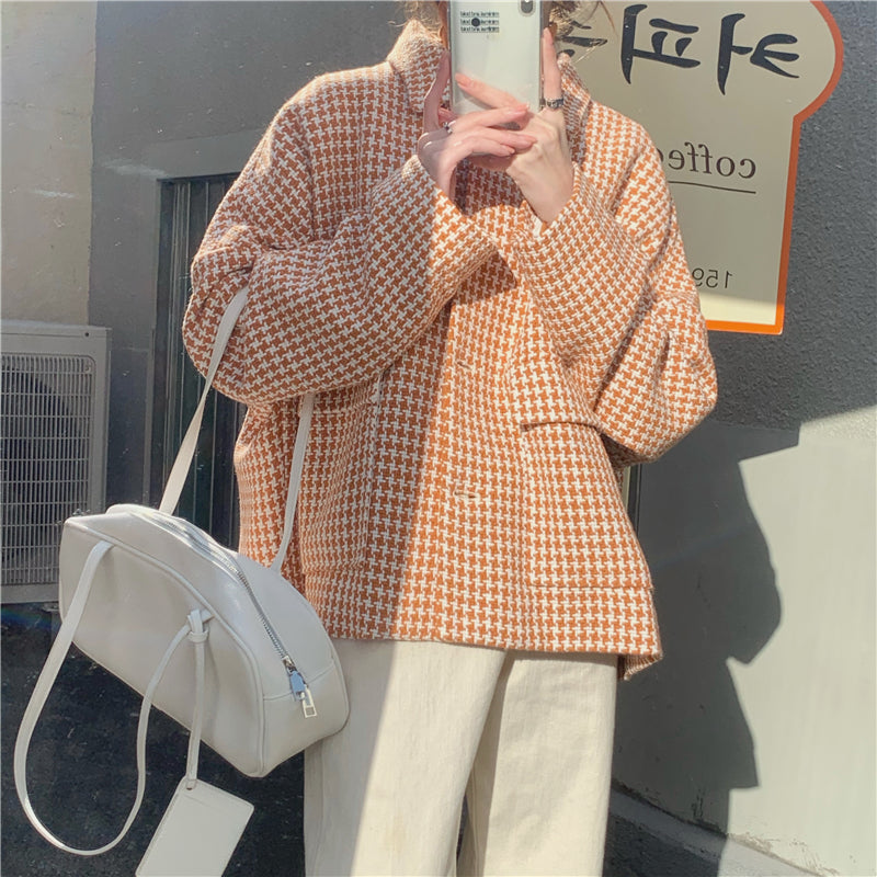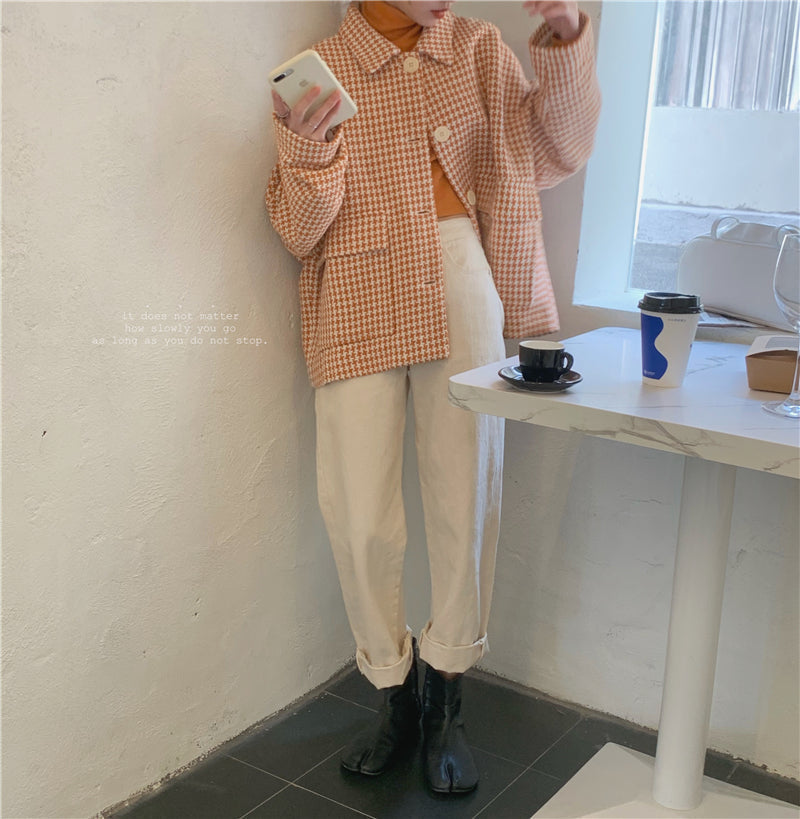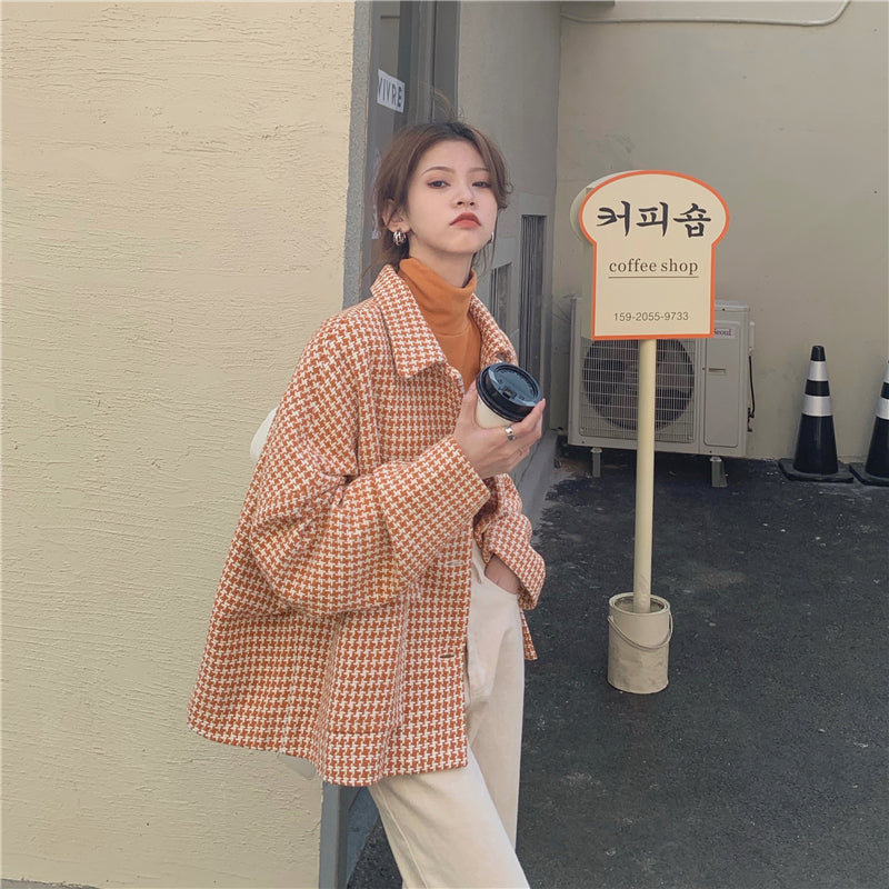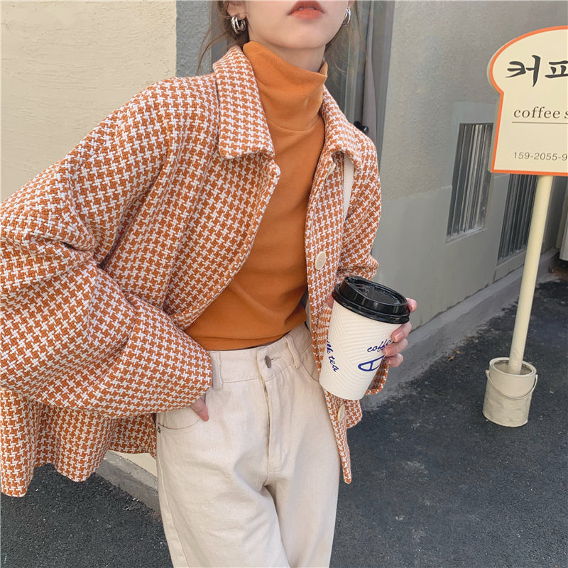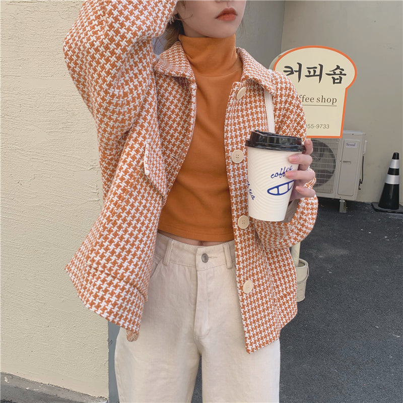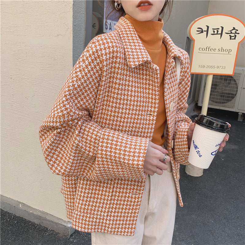 This is a coat that will keep you warm this winter while remaining stylish. The luxuriously soft cotton fabric is ideal for this season, and the Houndstooth pattern adds a fashionable touch. This is a coat that you will not want to take off for the rest of the day. The single-breasted closure makes it easy to wear, while the turn-down collar adds a stylish finish.