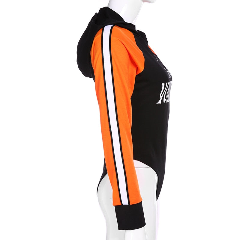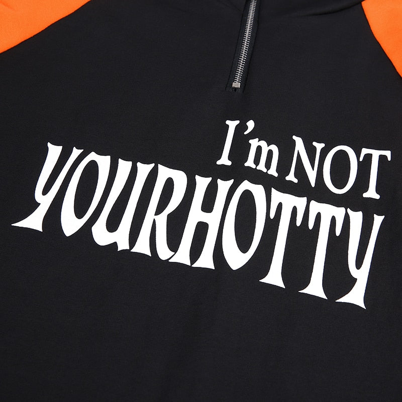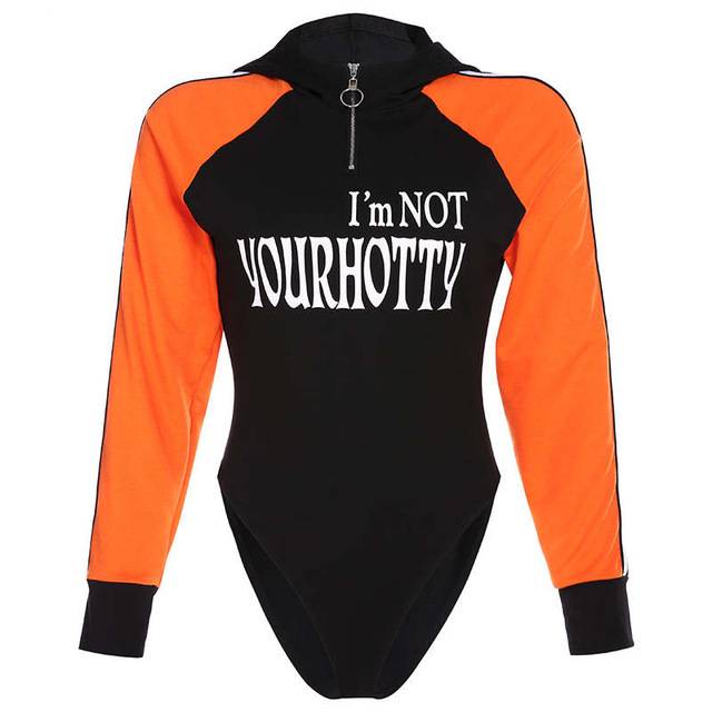 I'm Not Your Hotty Letter Bodysuit with Hoodie, Long Sleeve, and Cotton Spandex Material