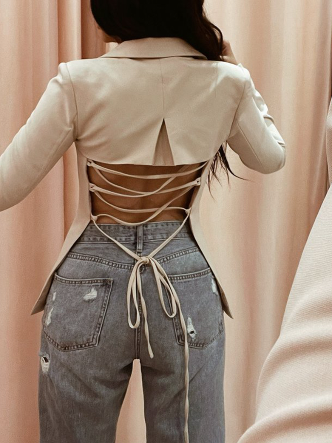 Looking for a stylish blazer that is perfect for dressing up, but still has some casual appeal? Look no further! The super-stylish backless single-button blazer is a versatile piece that can be worn in any season. Pair this item with jeans, leggings, or a cute dress for a versatile look. This blazer is made with top-quality polyester to ensure you are getting the absolute best quality. This piece has a classic style that is sure to become a staple in any wardrobe.