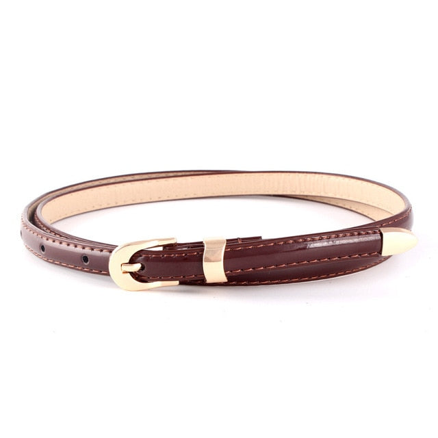 Solid PU Leather Skinny Belt with Alloy Buckle