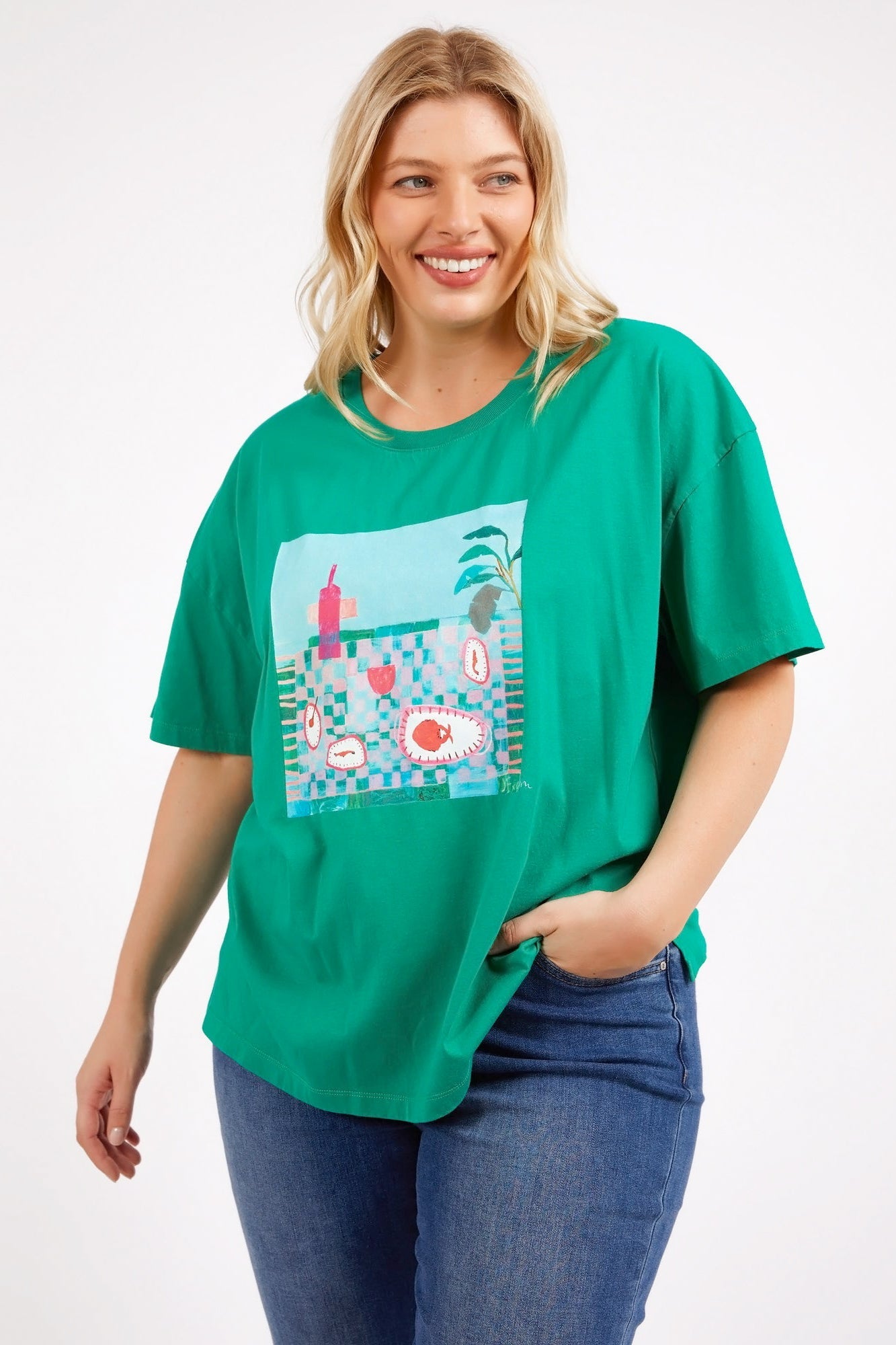 "A Tee for where we all want to be. Featuring a crew neck and an exclusive Elm graphic print let this tee take you to an island in the sun