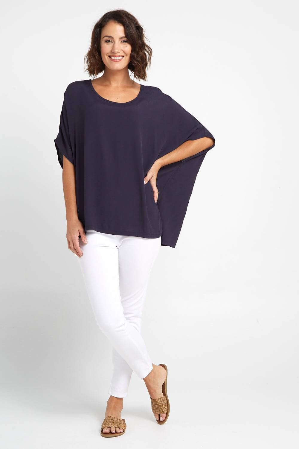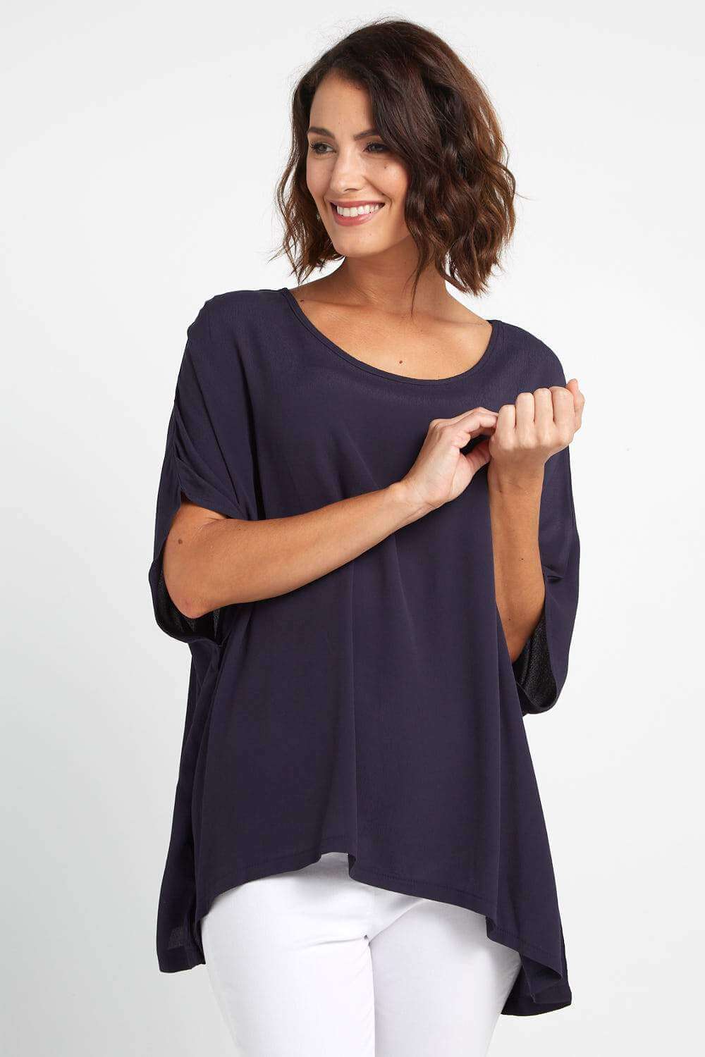 Now available in deep navy, a sleek and sophisticated colour. So simple and stylish, the Kuala Lumpur Top has the versatility to match your style, no matter what it is. Keep it chic and minimal or layer it up with accessories, or over a long sleeve top. The styling is only limited by your imagination! A wonderful staple piece to use as your fashion canvas.