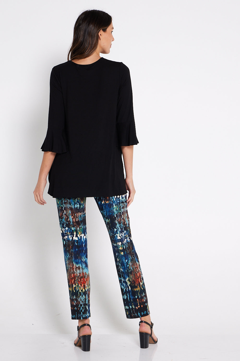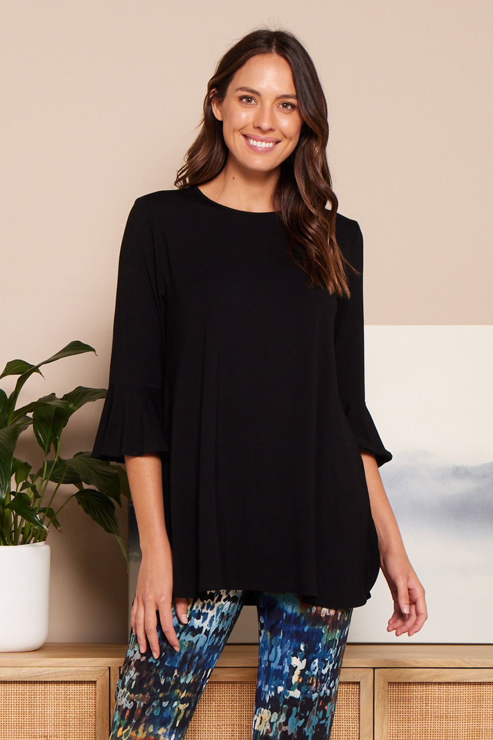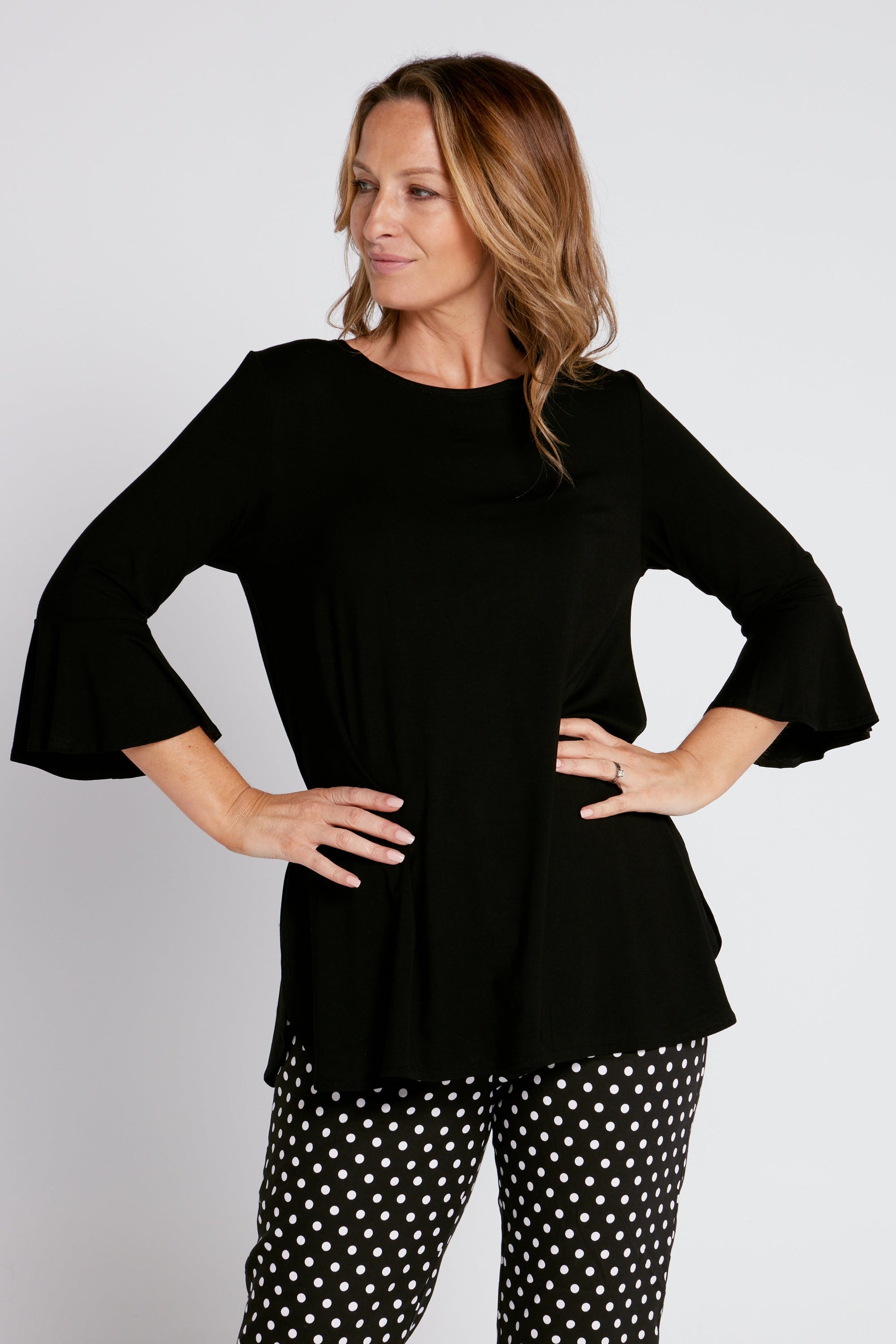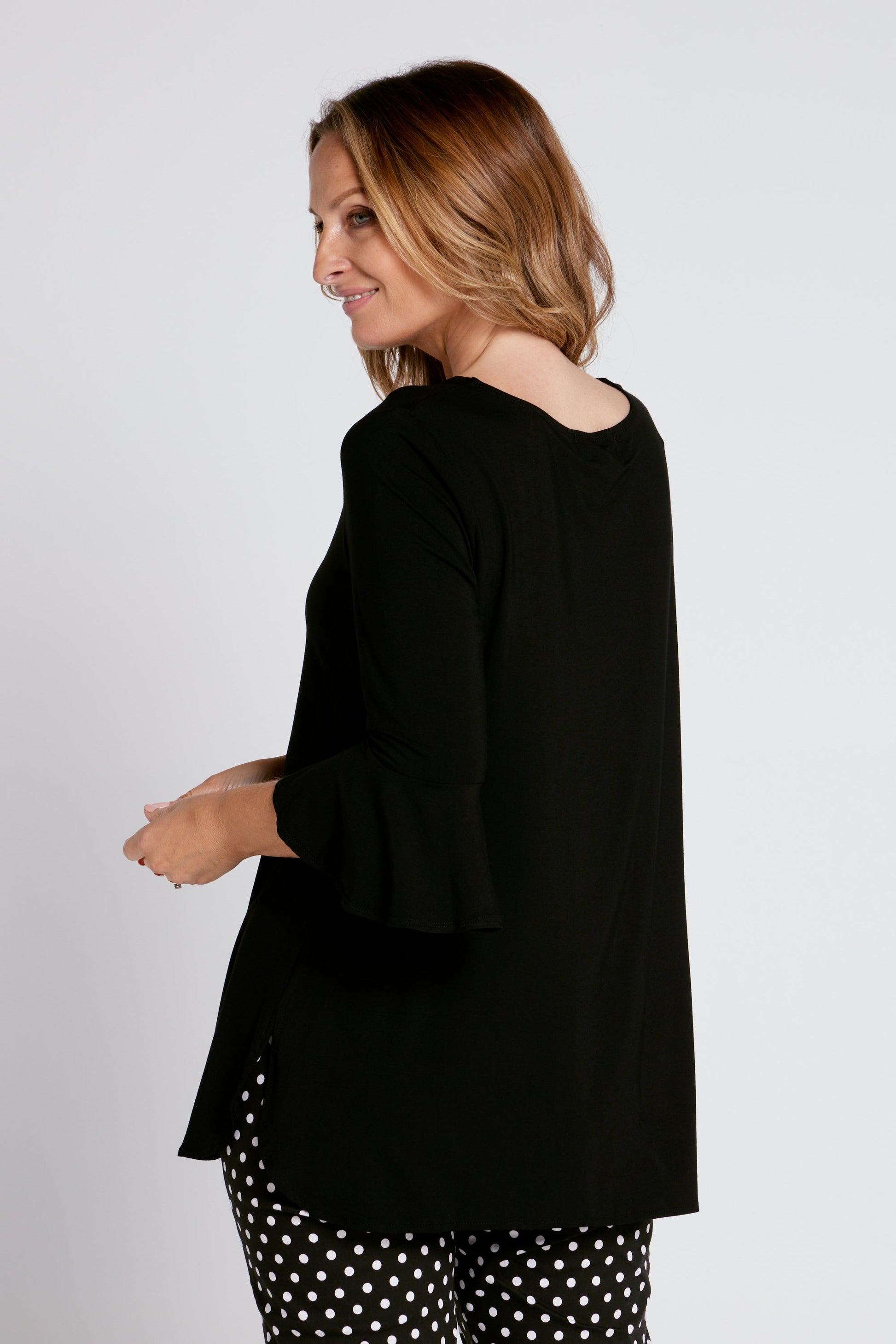Crafted with a three quarter sleeve and a fluted cuff. Combined with the basic black colourway, it gives a modern take on femininity.