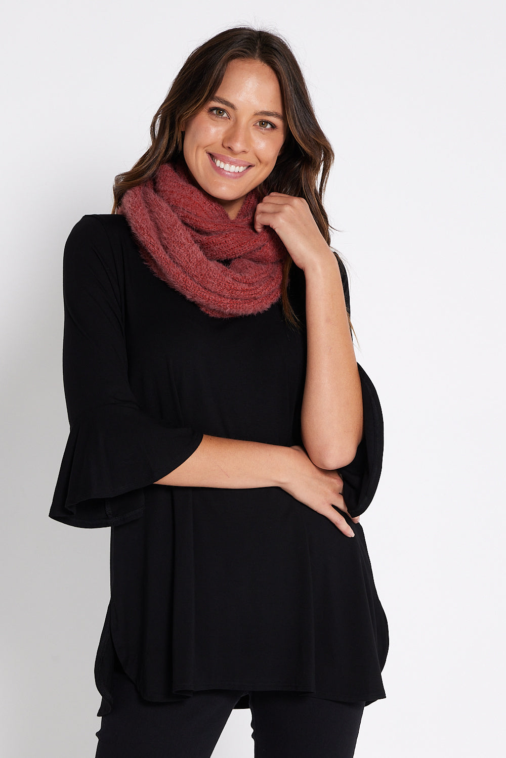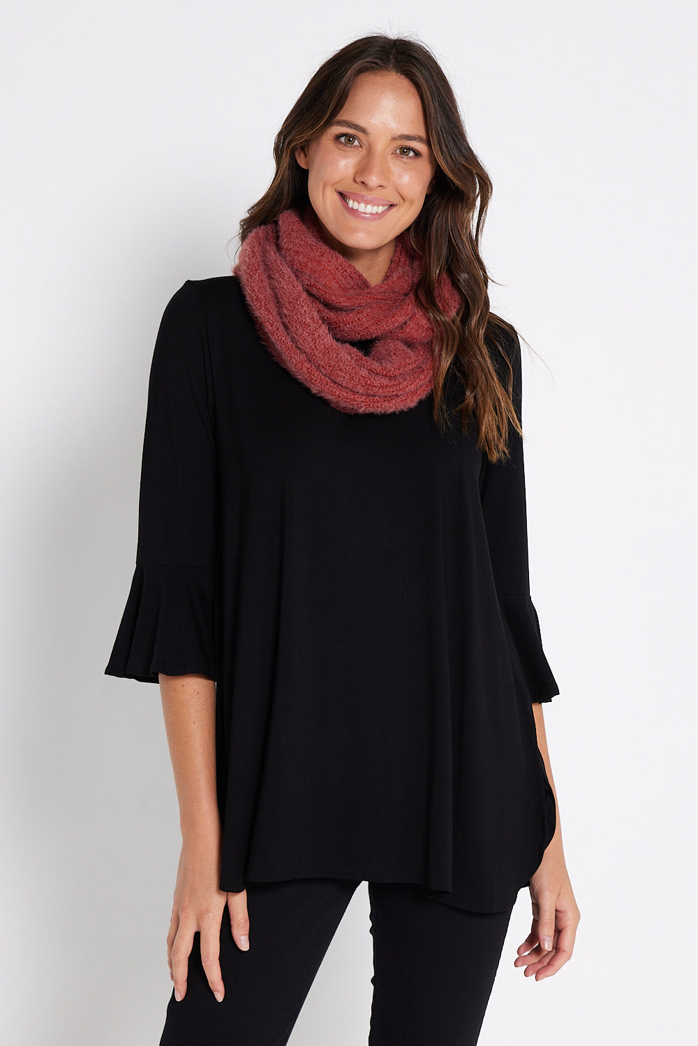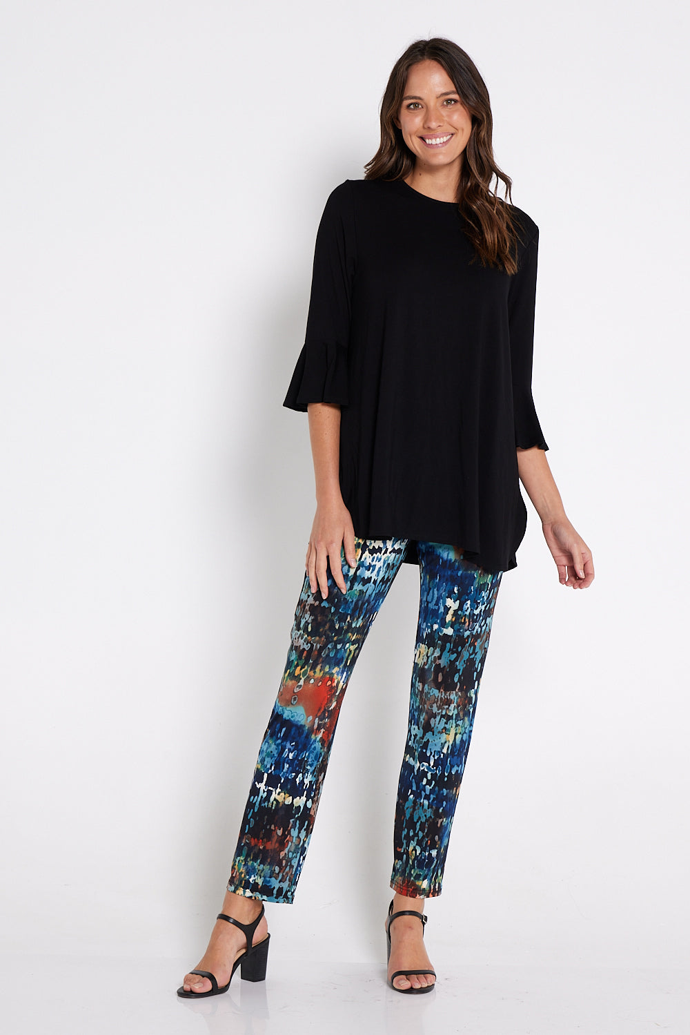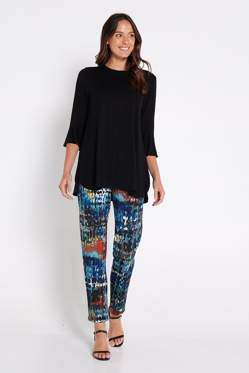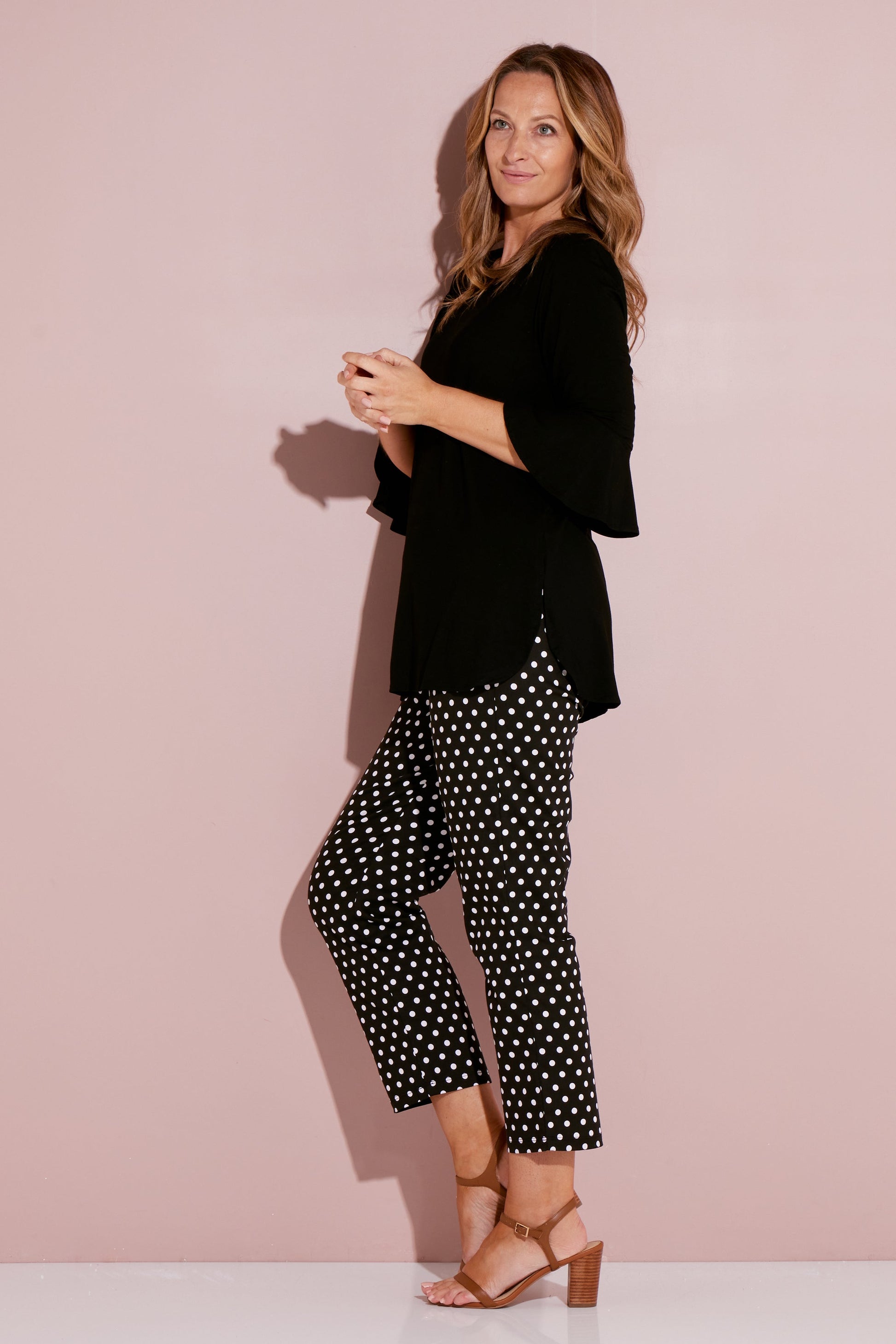 Crafted with a three quarter sleeve and a fluted cuff. Combined with the basic black colourway, it gives a modern take on femininity.