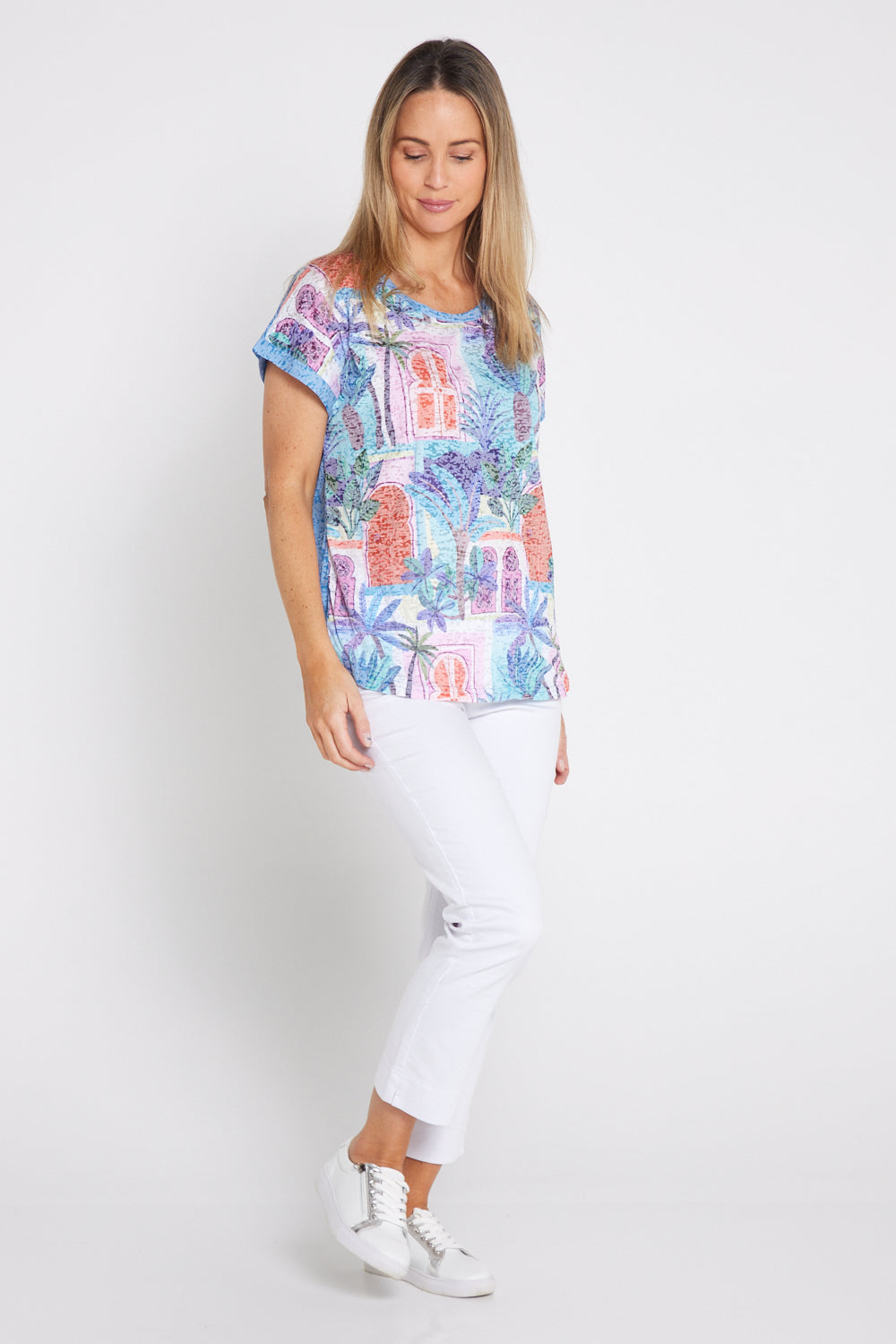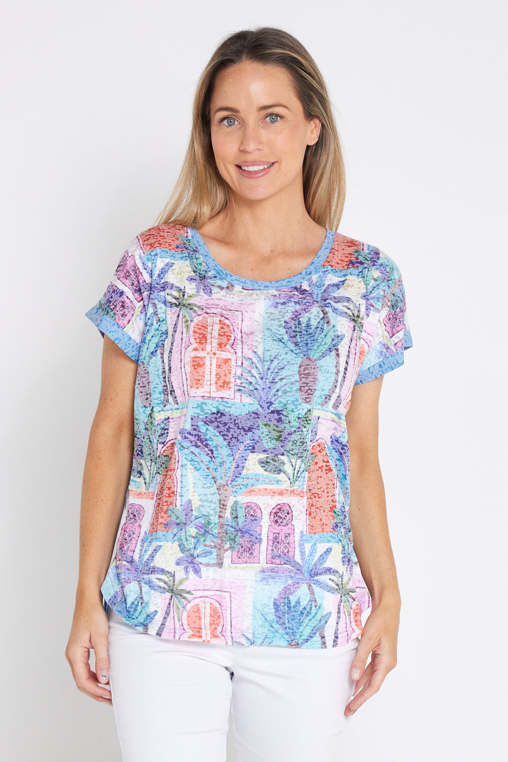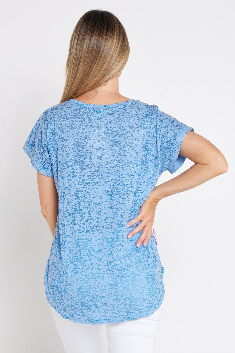 Layla Print Burn-Out Top - Ocean Palms