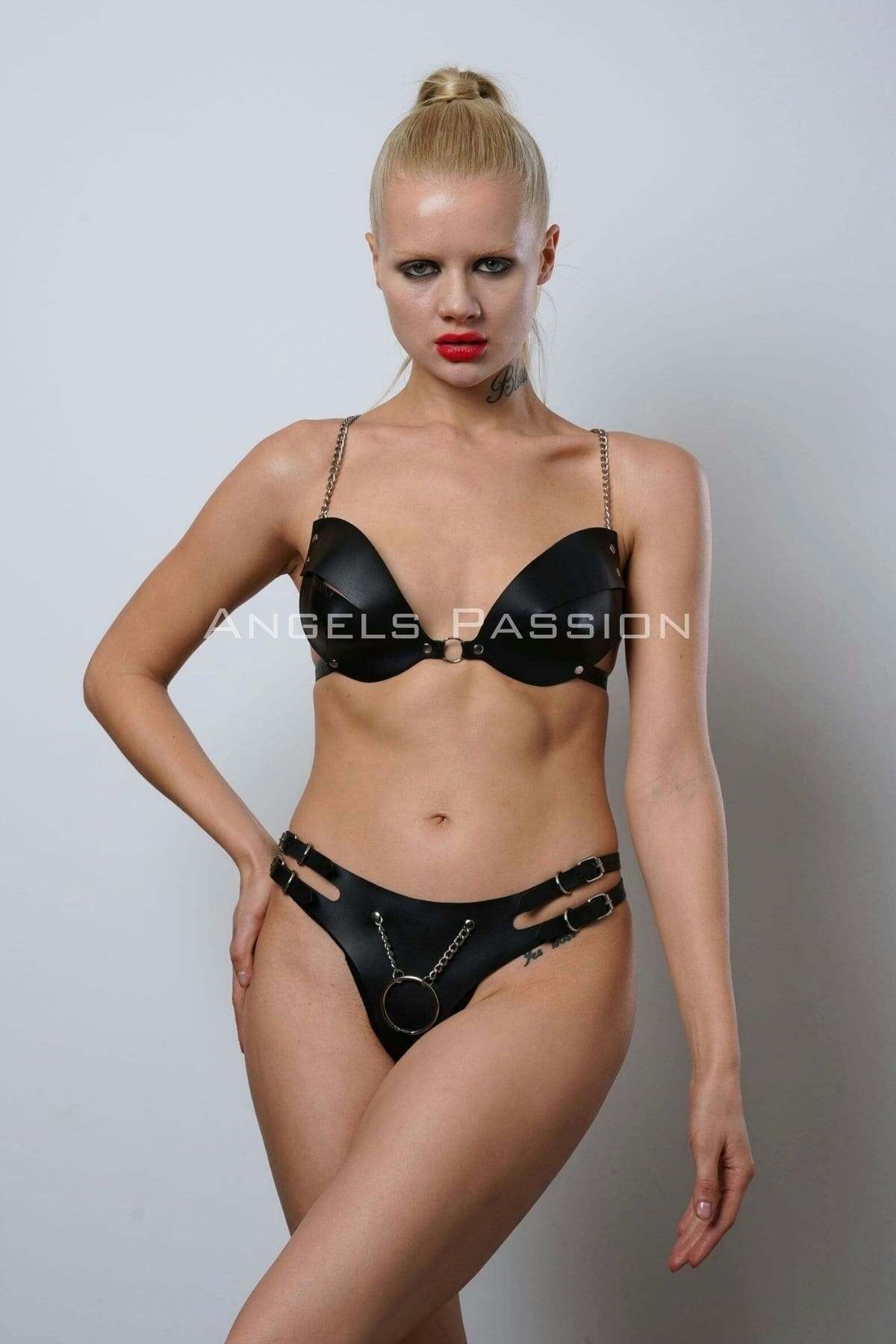 Leather Bra Set, Sexy Leather Fantasy Clothing Bra Set