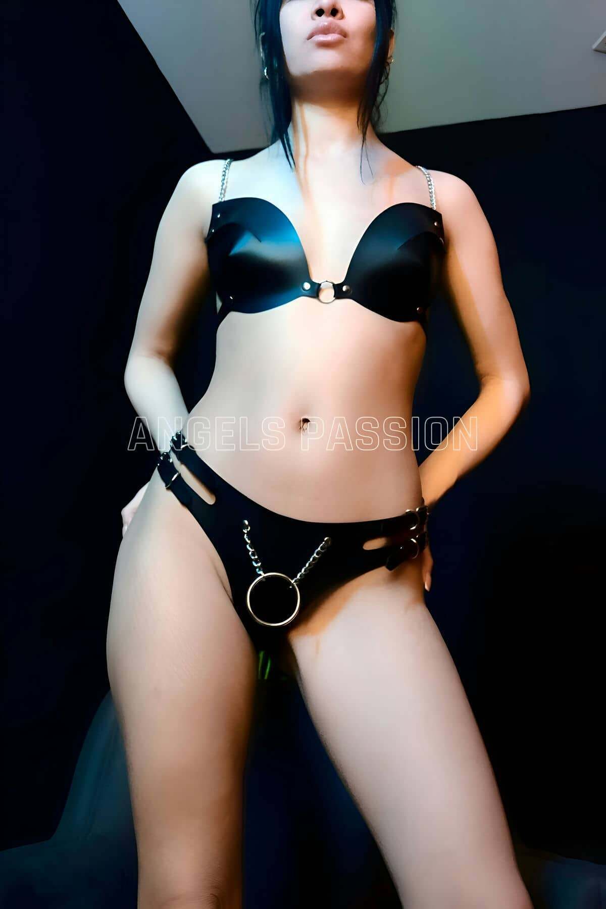 Leather Sexy Bra Set, Leather Fantasy Underwear, Chain Detailed Bra Harness Set