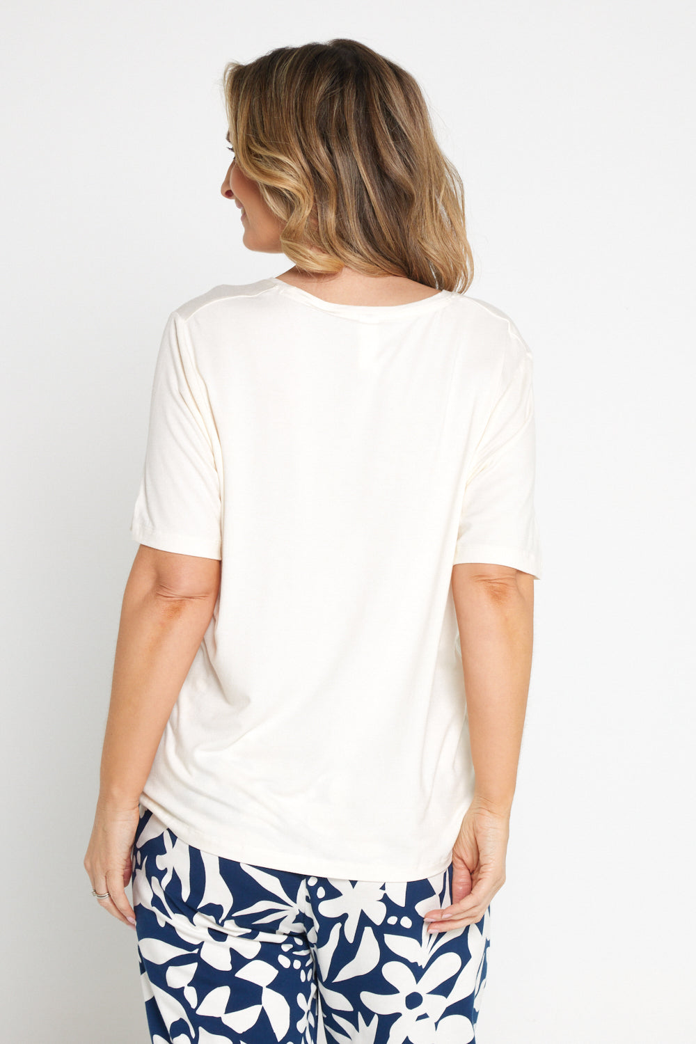 We just adore viscose jersey it is so buttery soft that it brings a feeling of luxury to your basics and ensures you spend your day in comfort. The classic t-shirt design is so versatile and is bound to become one of your go to basics for years to come. Elm's Pearl colour is a beautiful cream shade, perfect for the outfits that just don't work with stark white. Ideal for matching with the Stencil Pants in Navy and Cream.