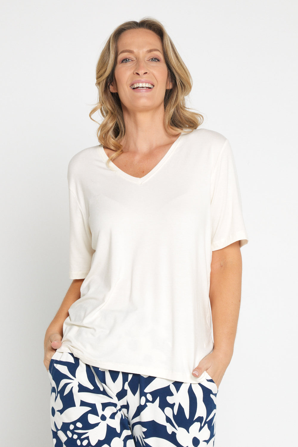 Lexi V Neck Tee - Pearl