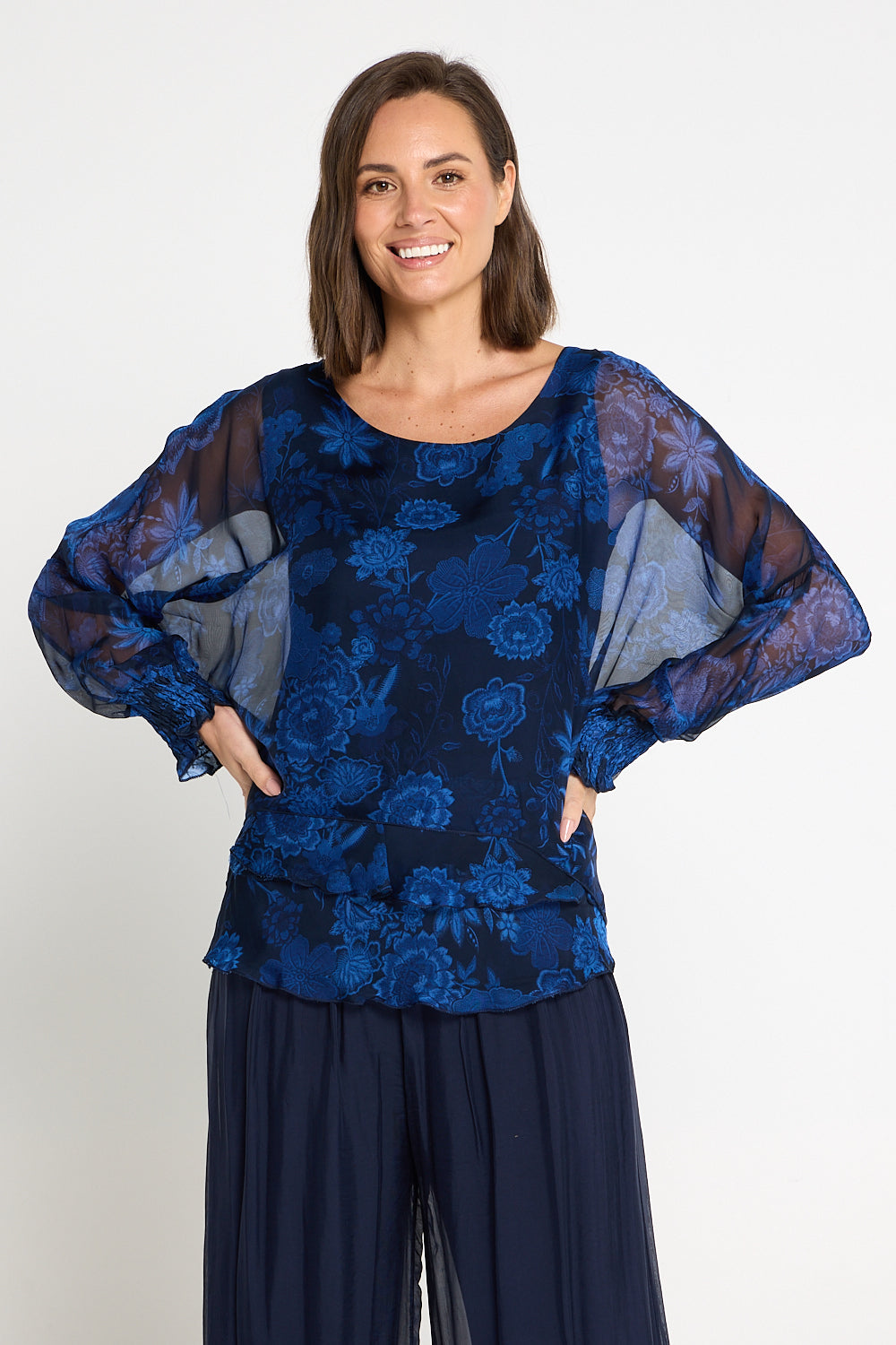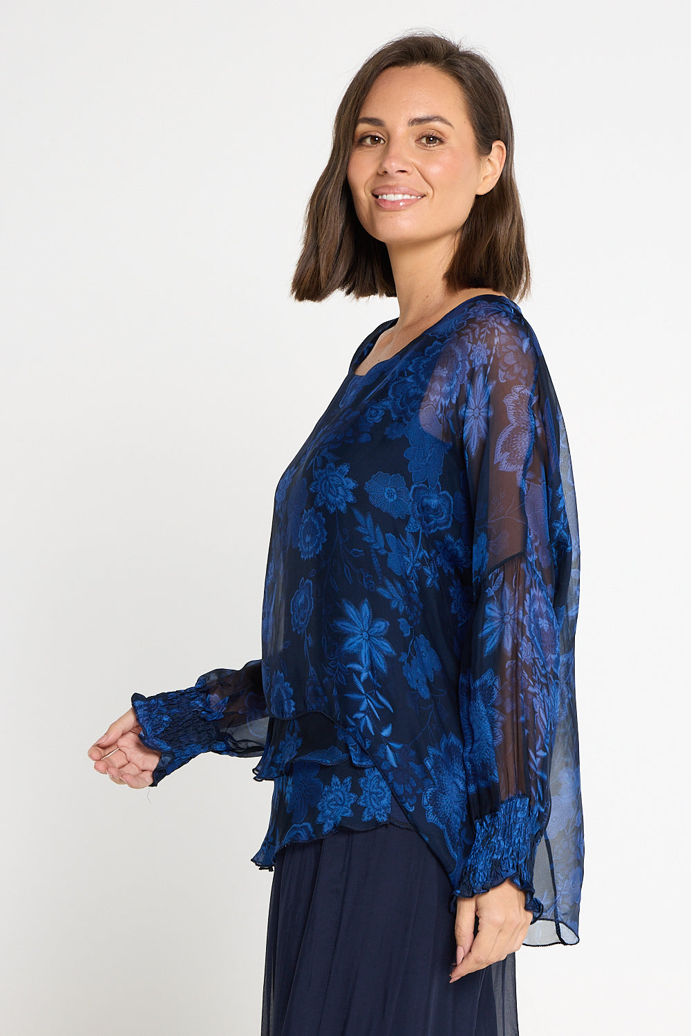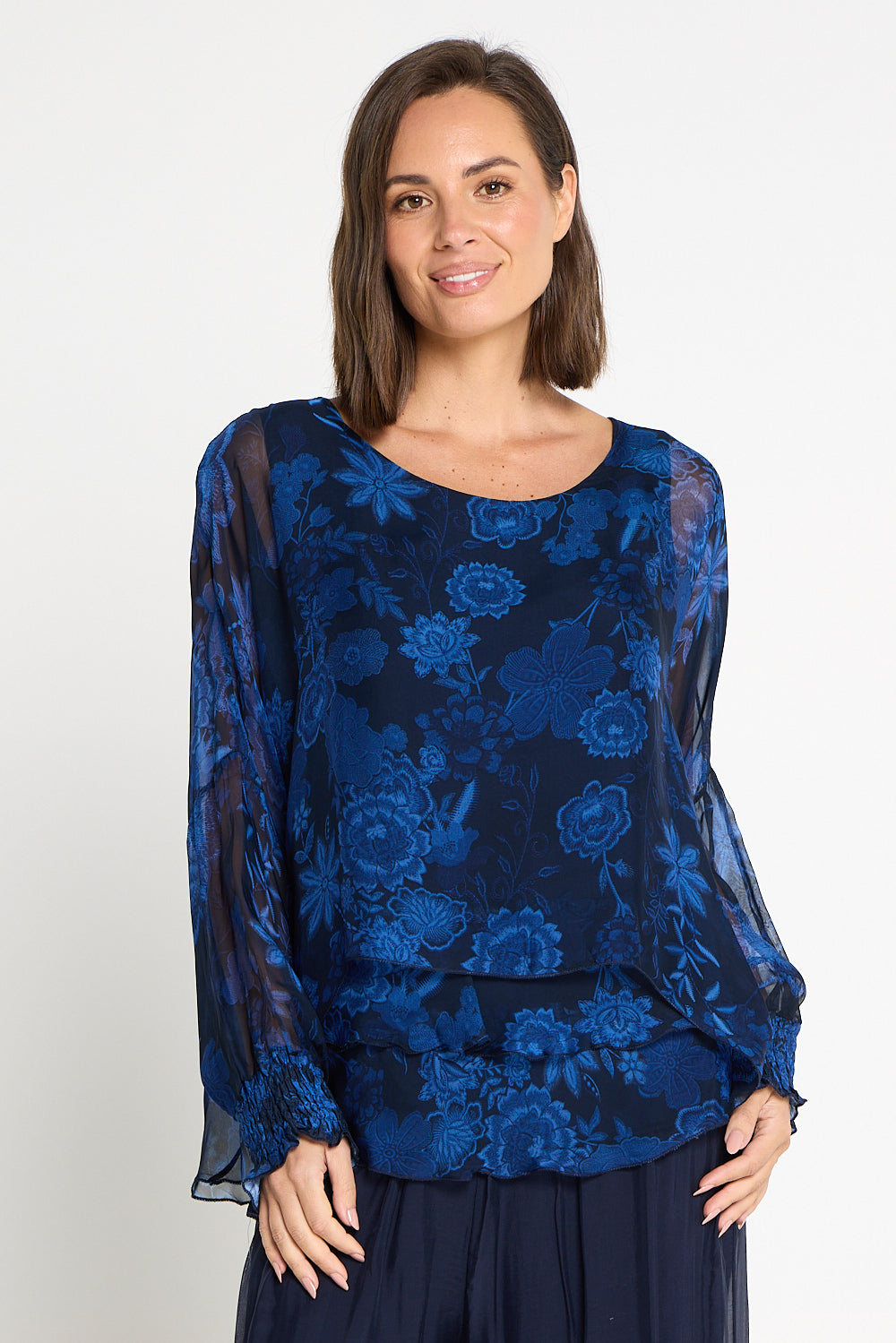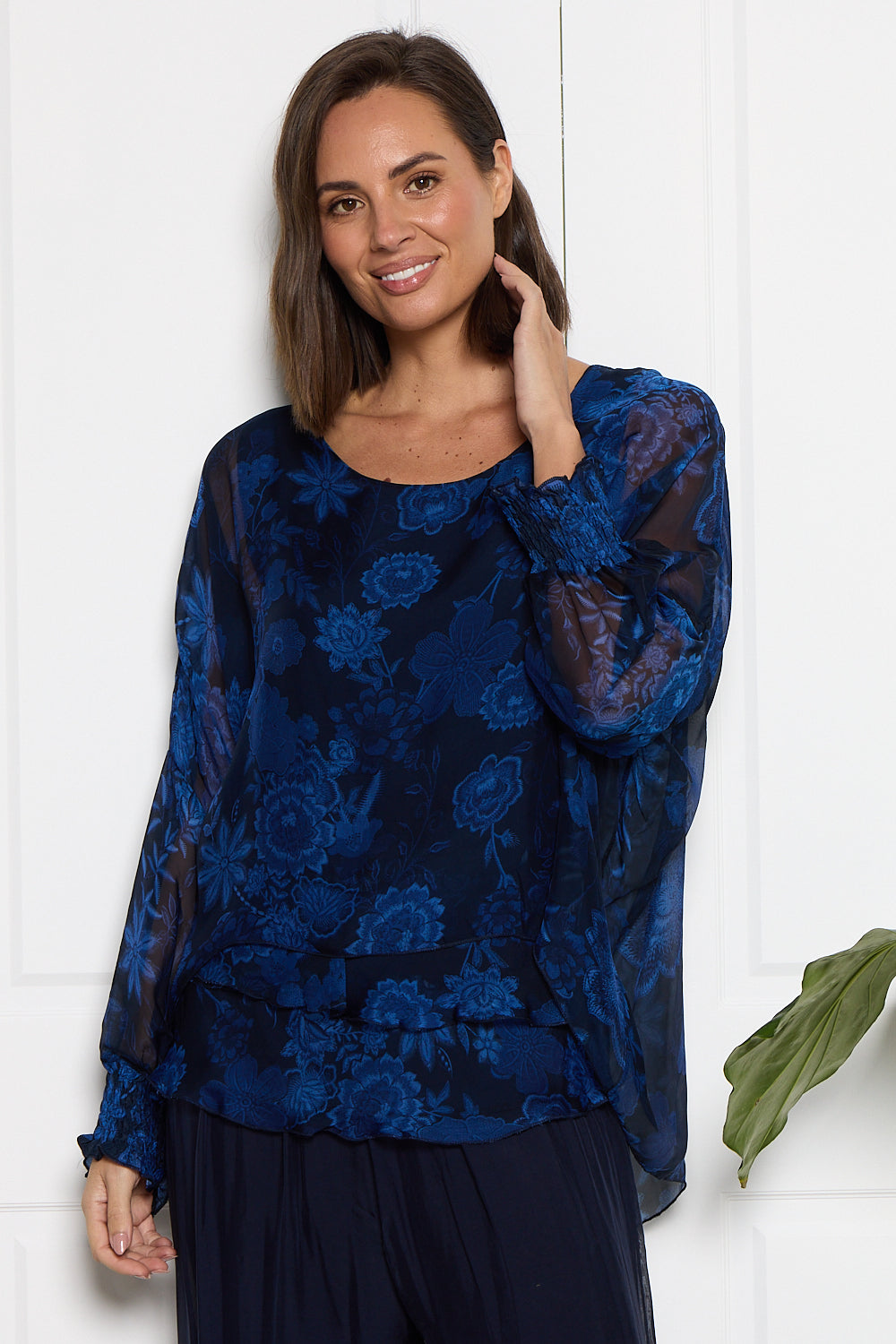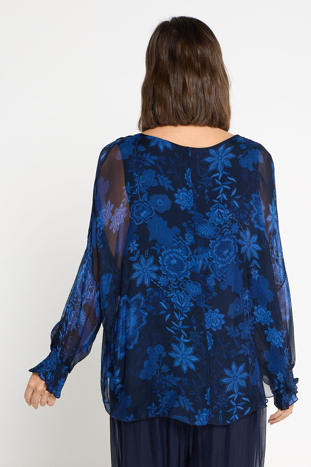 Lisette Long Sleeve Silk Top - Royal Jacobean