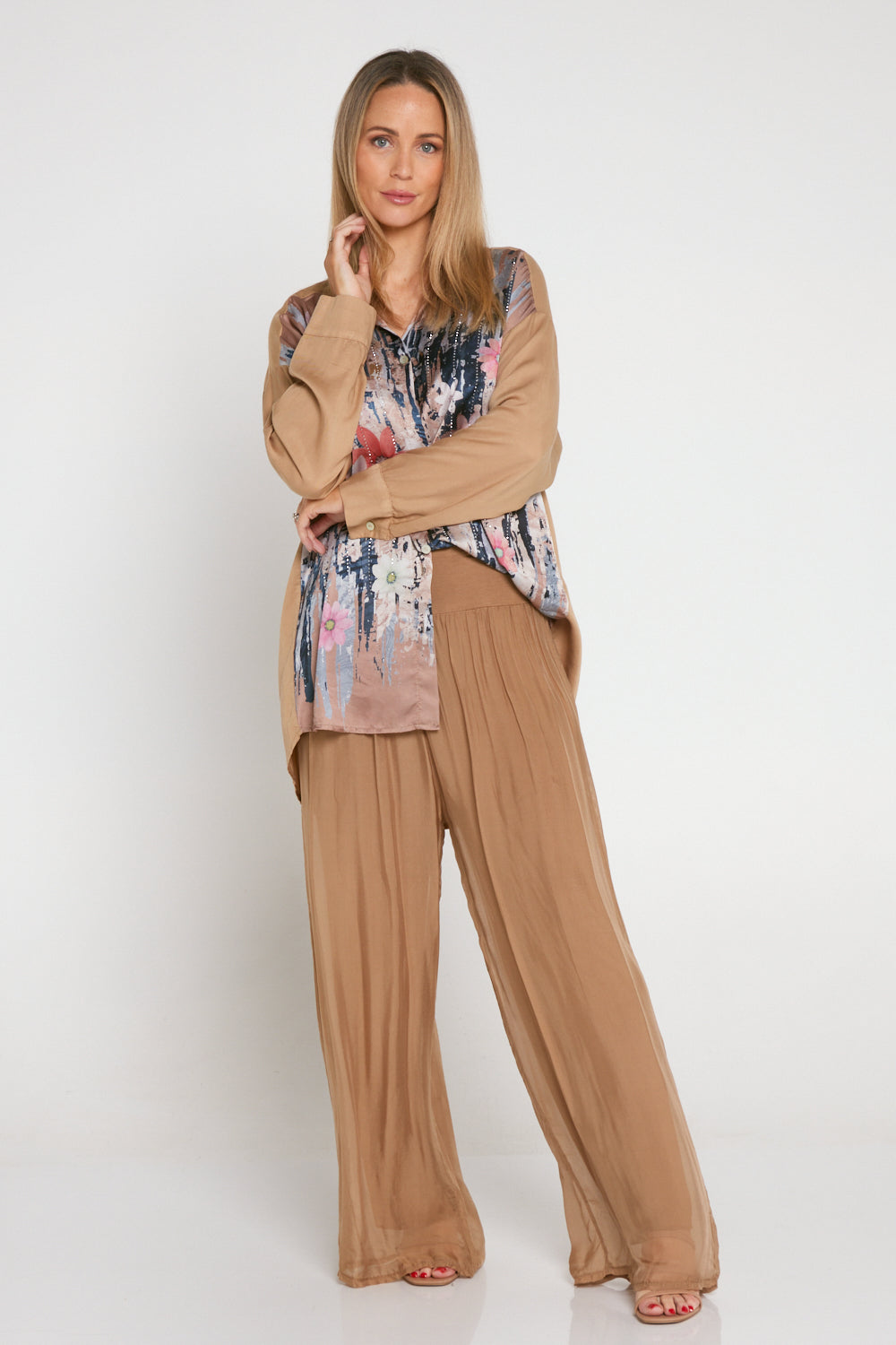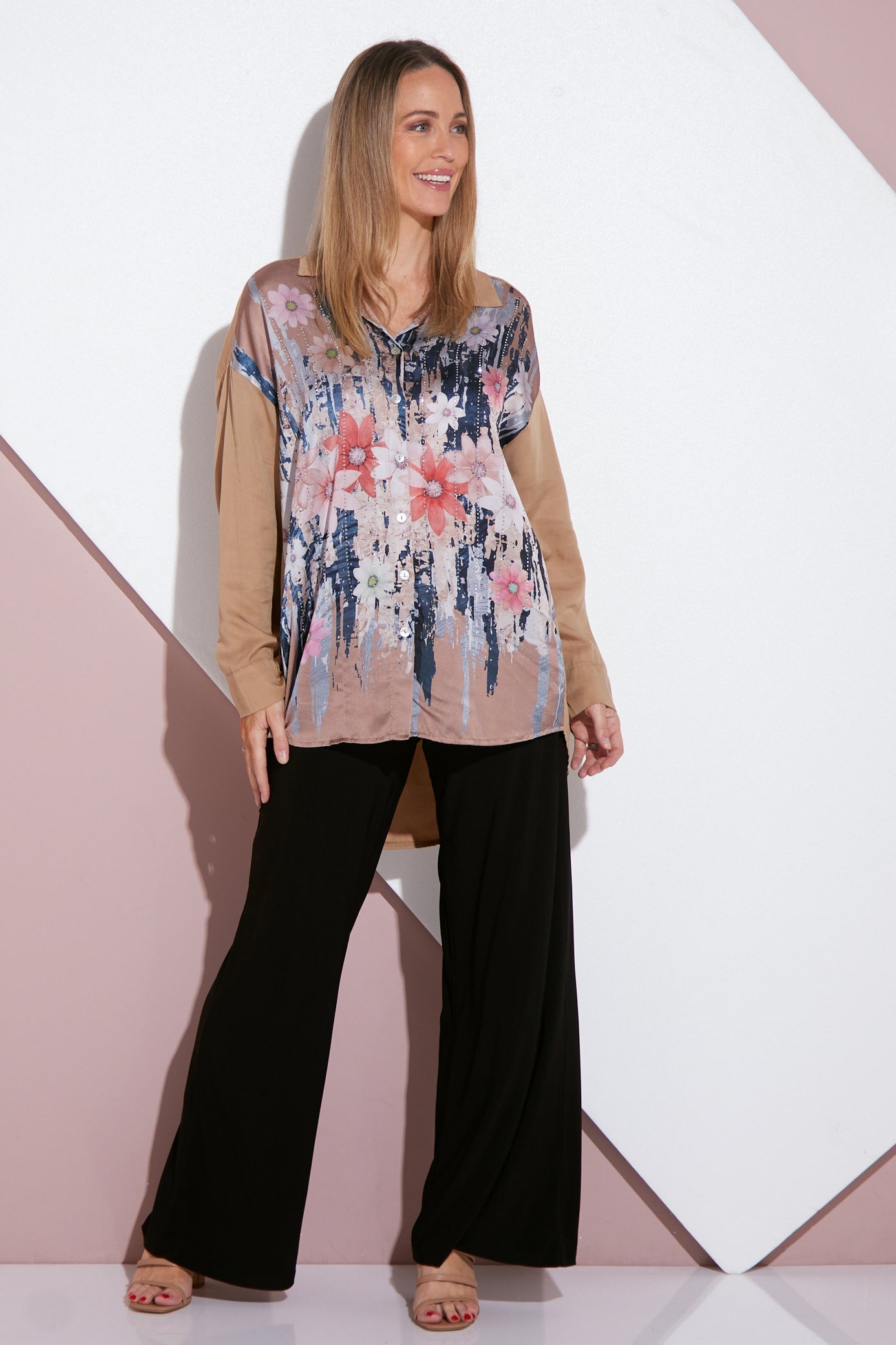Lorna Luxe Rhinestone Shirt - Caramel Floral