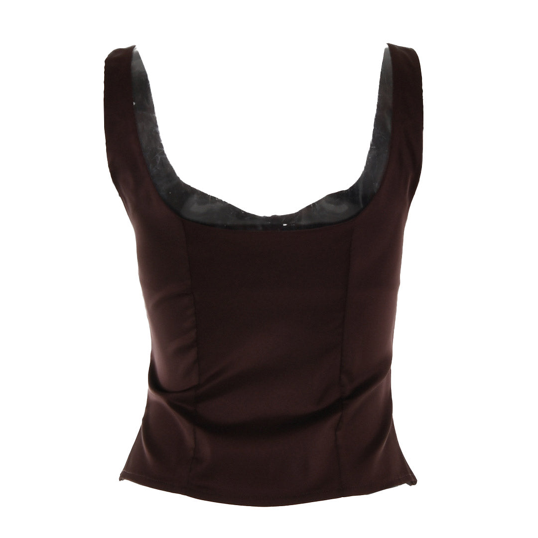 Luxury Satin Square Neck Button Up Sleeveless Tank Top - Brown
