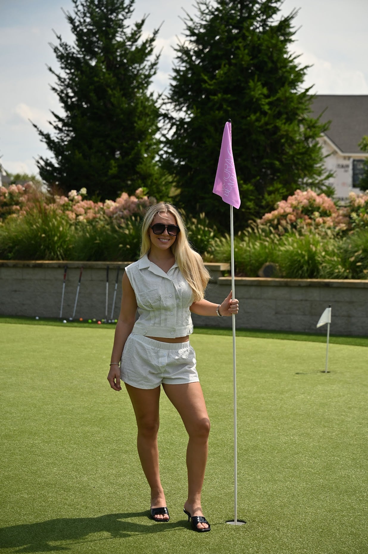 Bring a fresh twist to your wardrobe with this playful two-piece set inspired by the world of golf. Featuring crisp lines and a sporty vibe, it offers a perfect blend of comfort and style for your daily hustle. Whether you're managing your day or just managing to look good, this set keeps things light and lively. Get ready to tee off your fashion game with effortless charm.