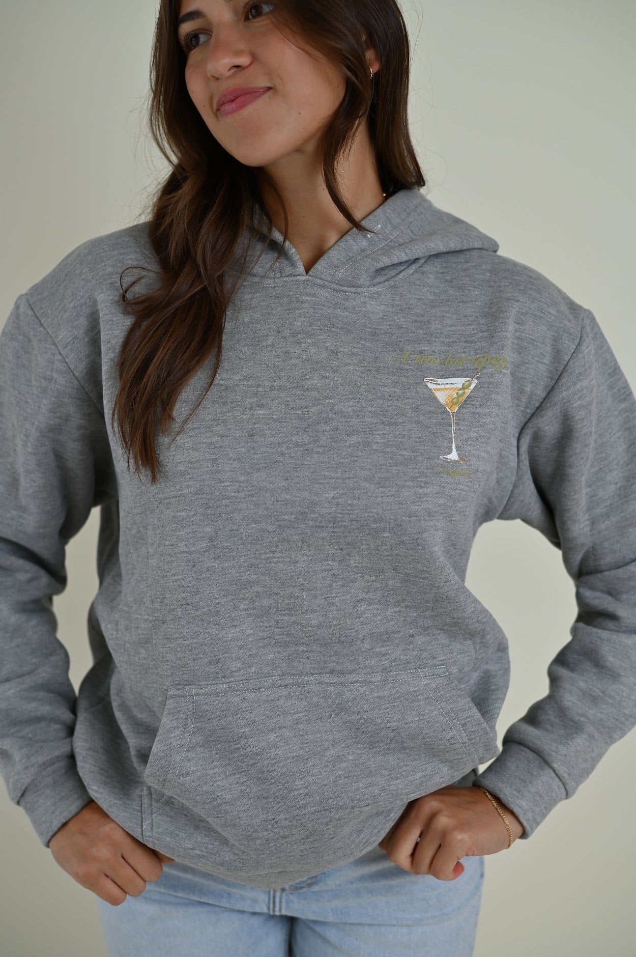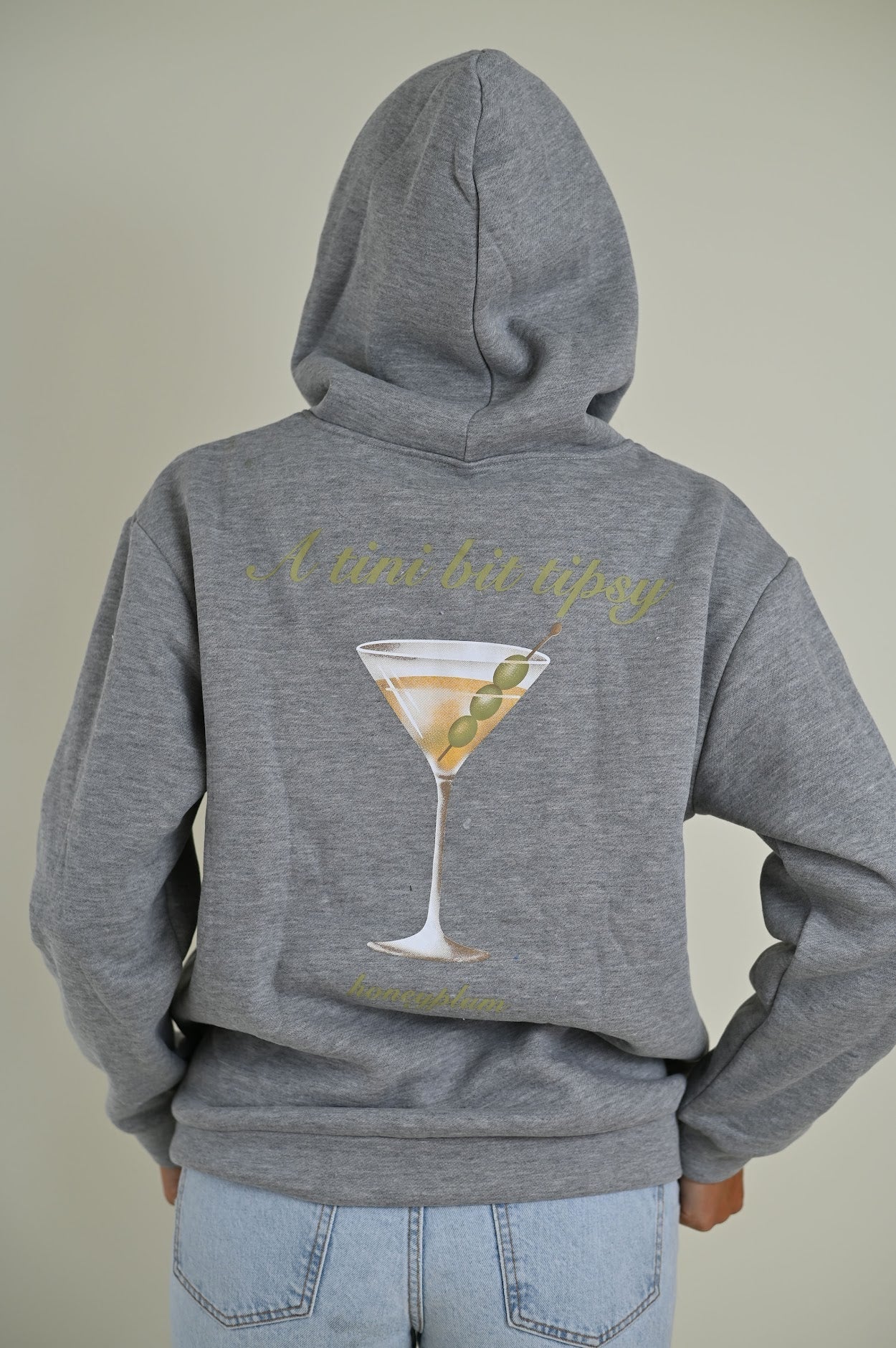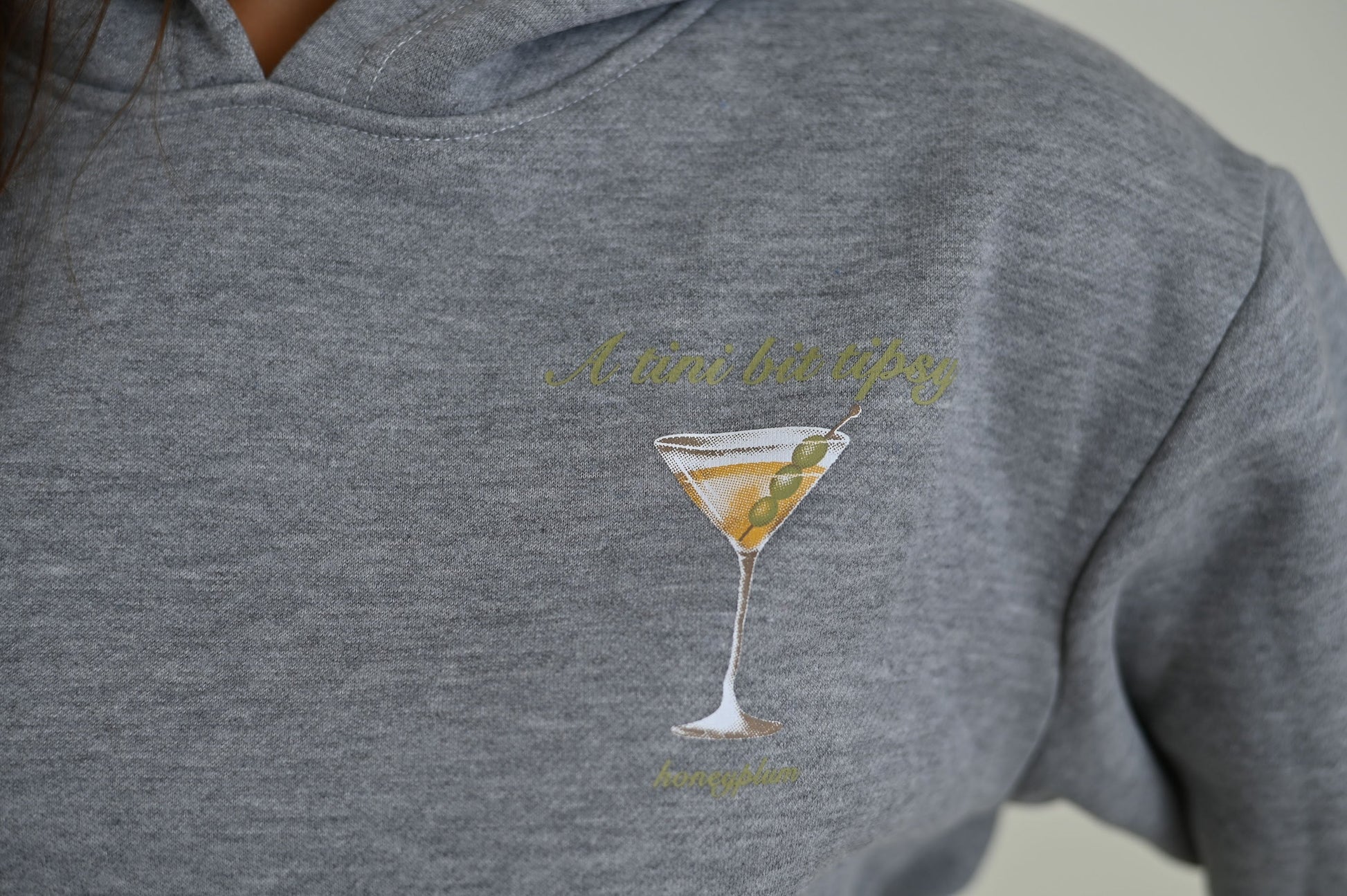 Get your drink on with the Martini Hoodie! Featuring bold green words on a comfortable hoodie, this quirky piece is perfect for the ultimate party-goer. Stand out and make a statement with this unique hooded sweatshirt. Cheers to style and comfort in one!