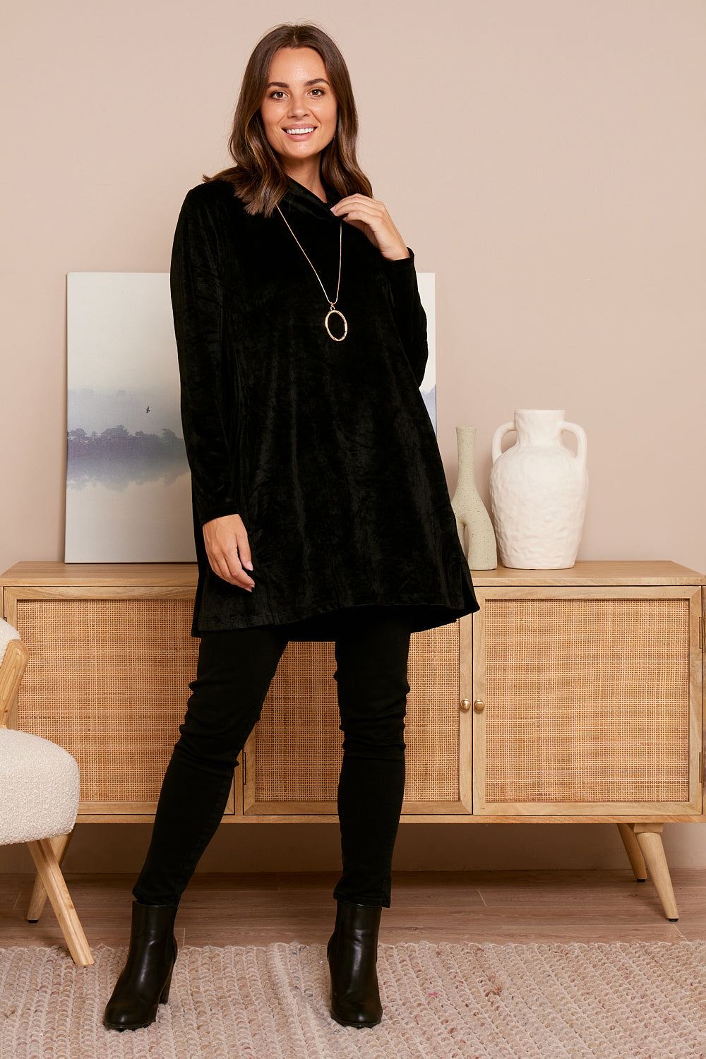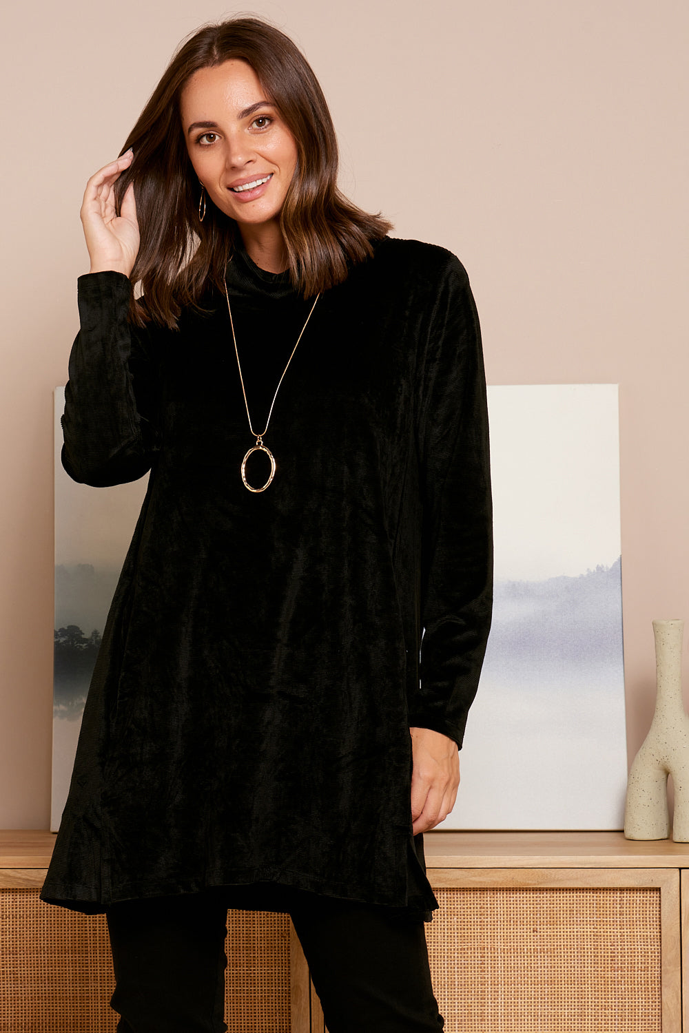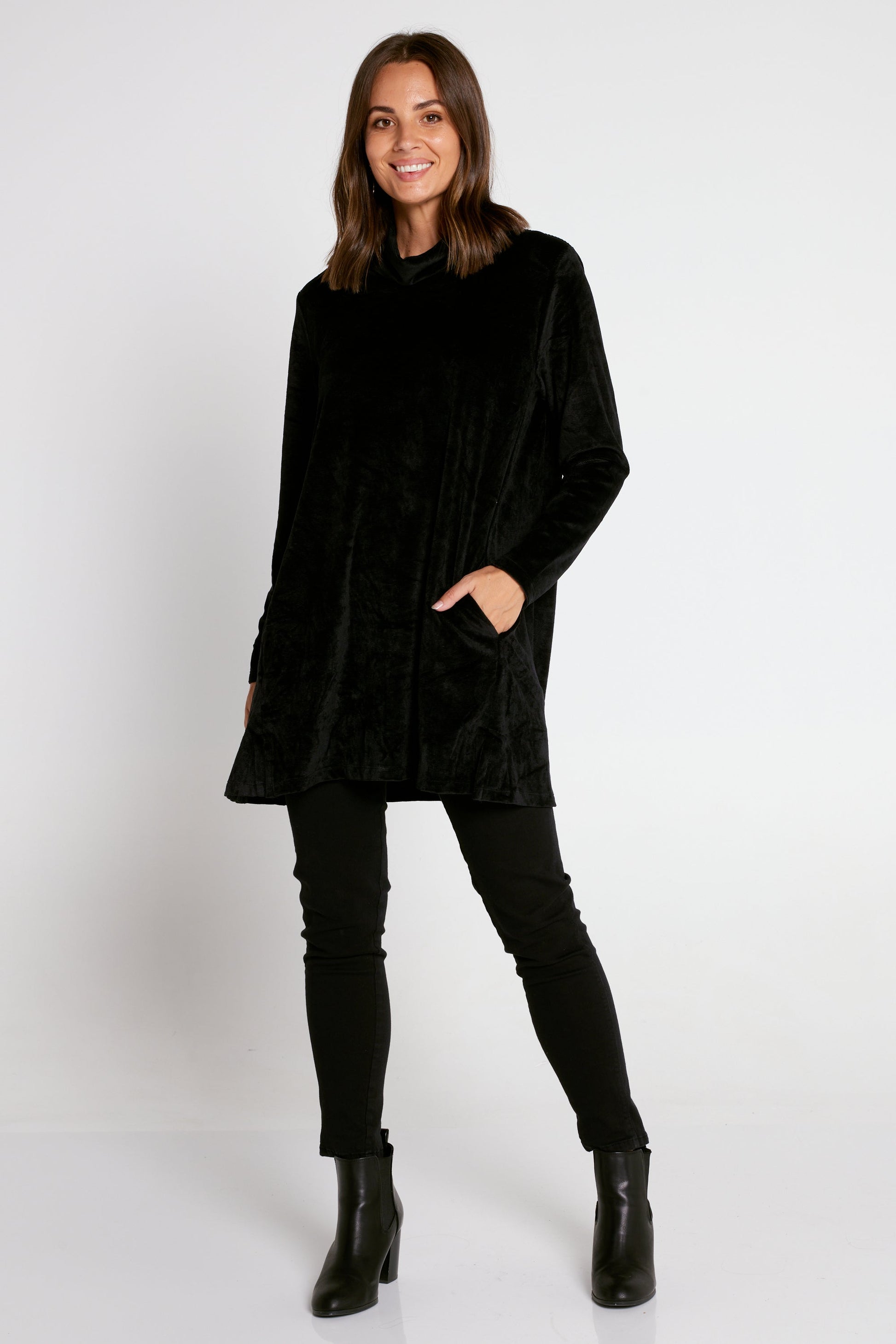 Melanie Velour Tunic - Black
