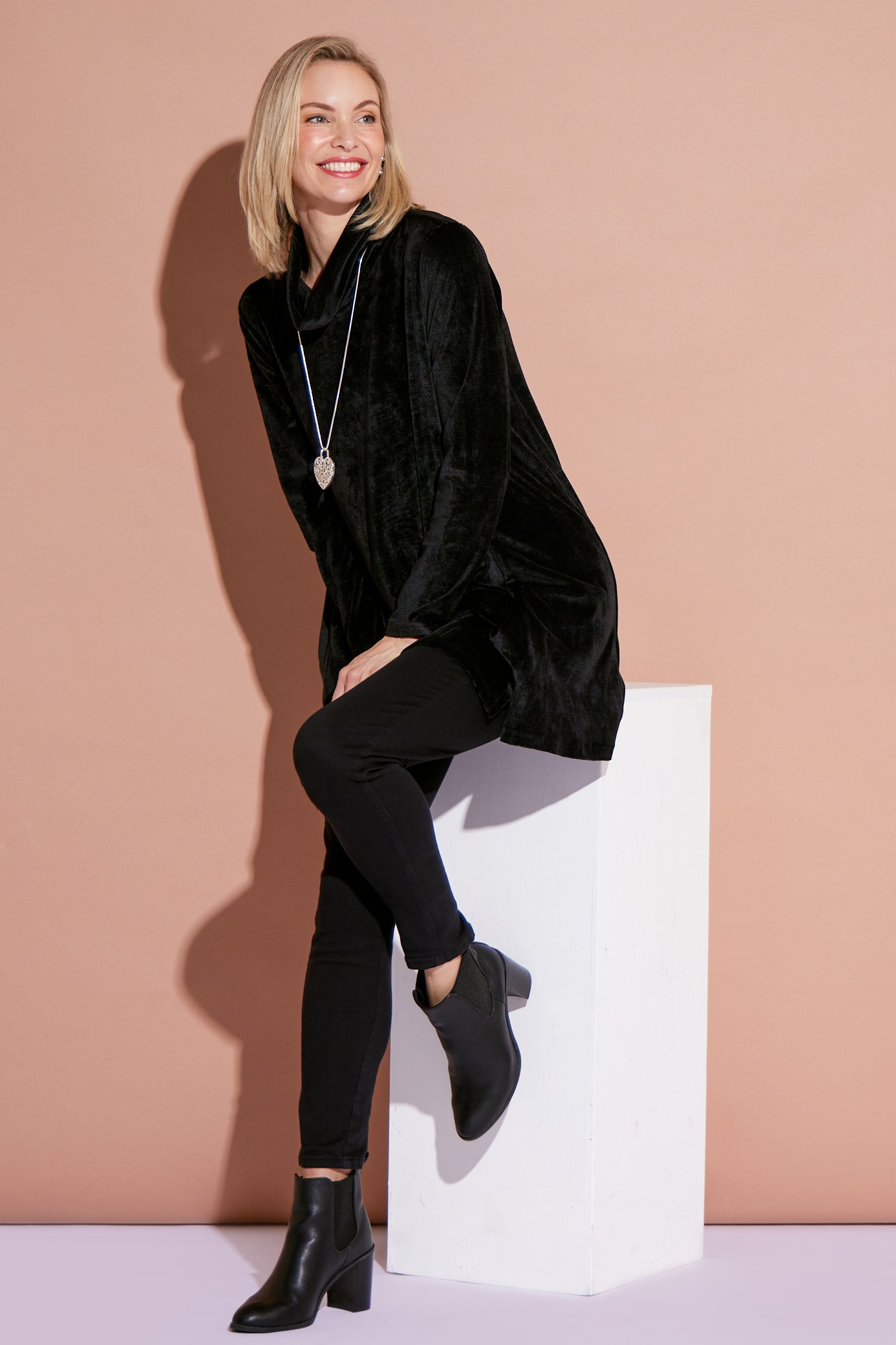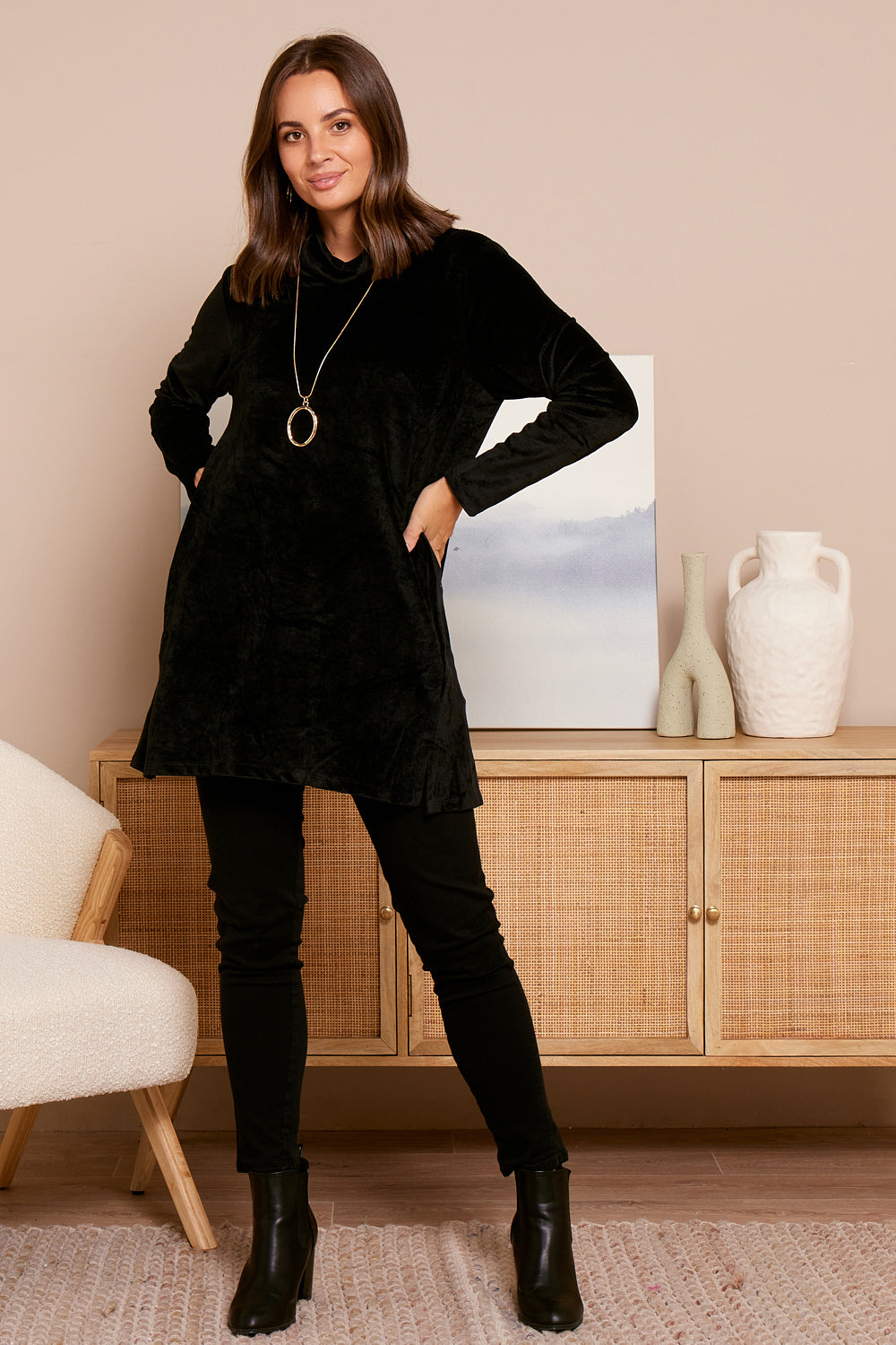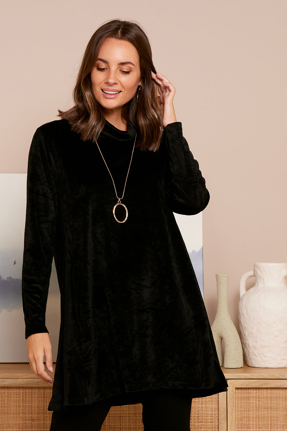 Melanie Velour Tunic - Black
