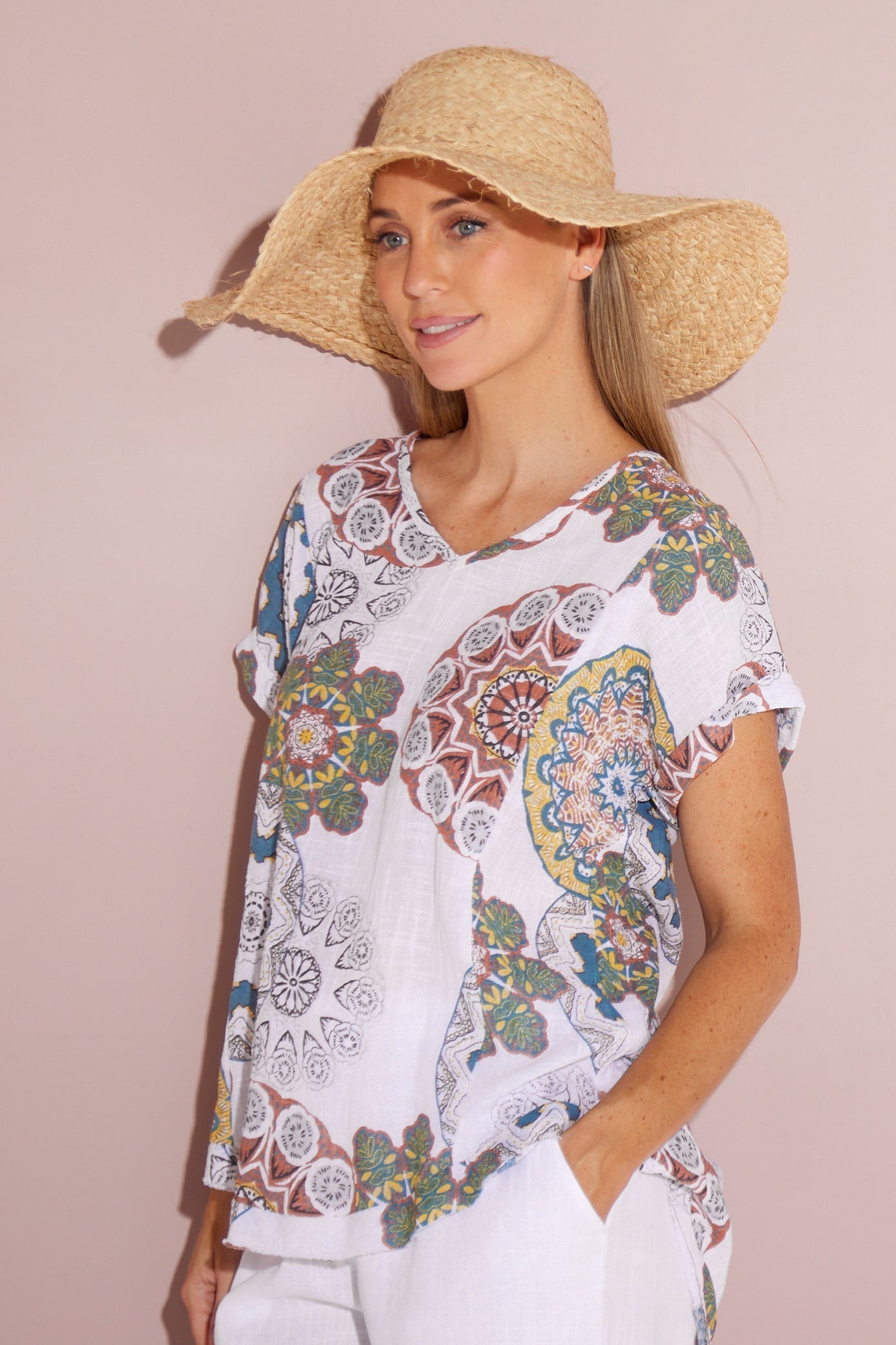 Mojave Linen Top - Desert Blooms