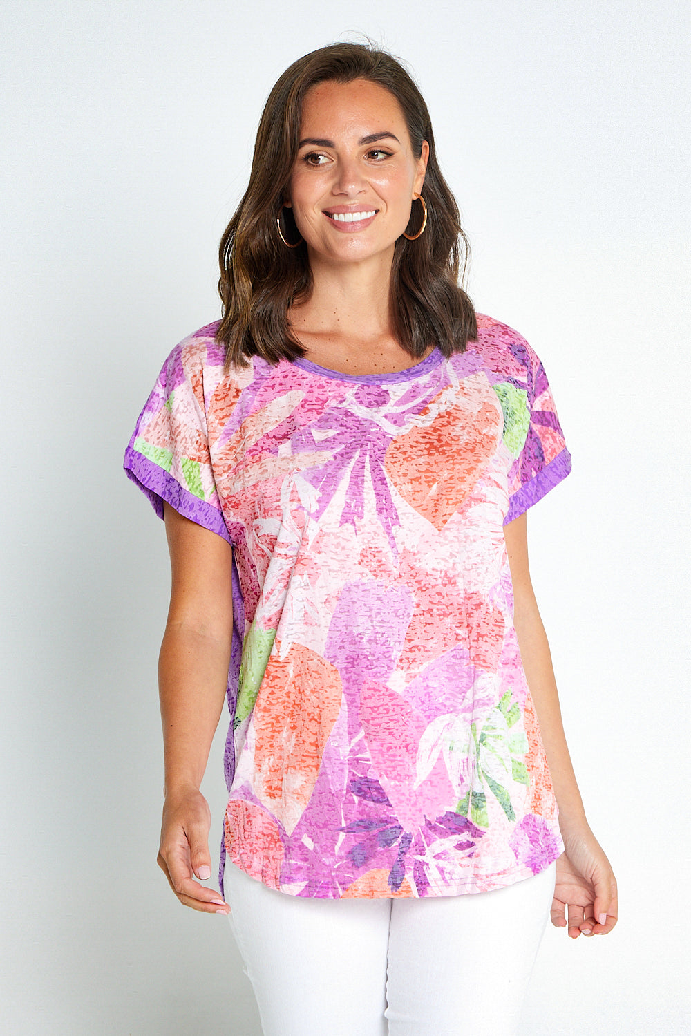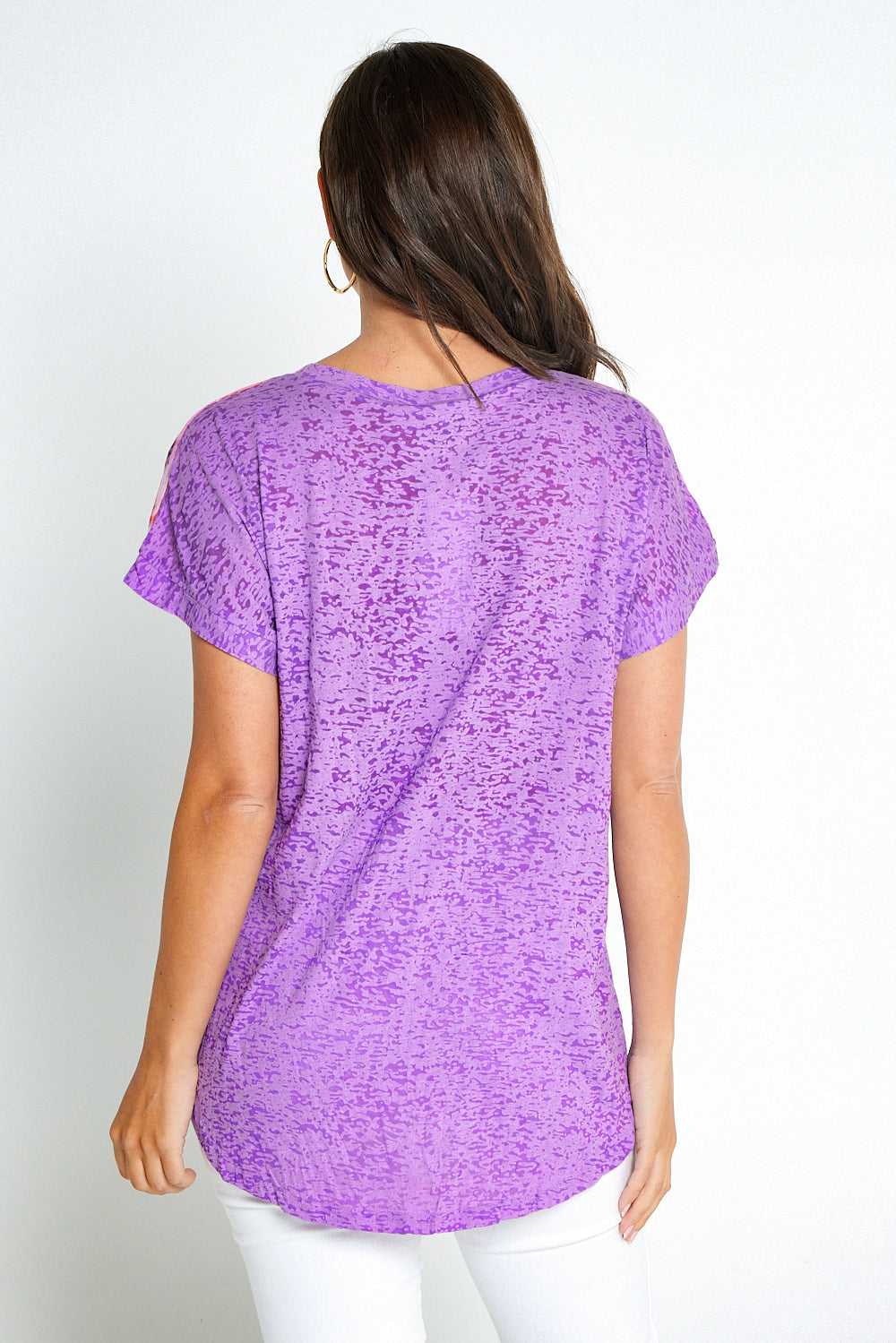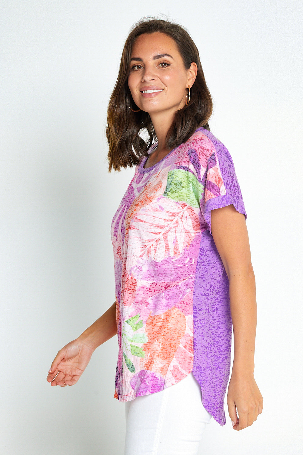 Nadia Burnout Tee - Lavender Abstract Tropical Print