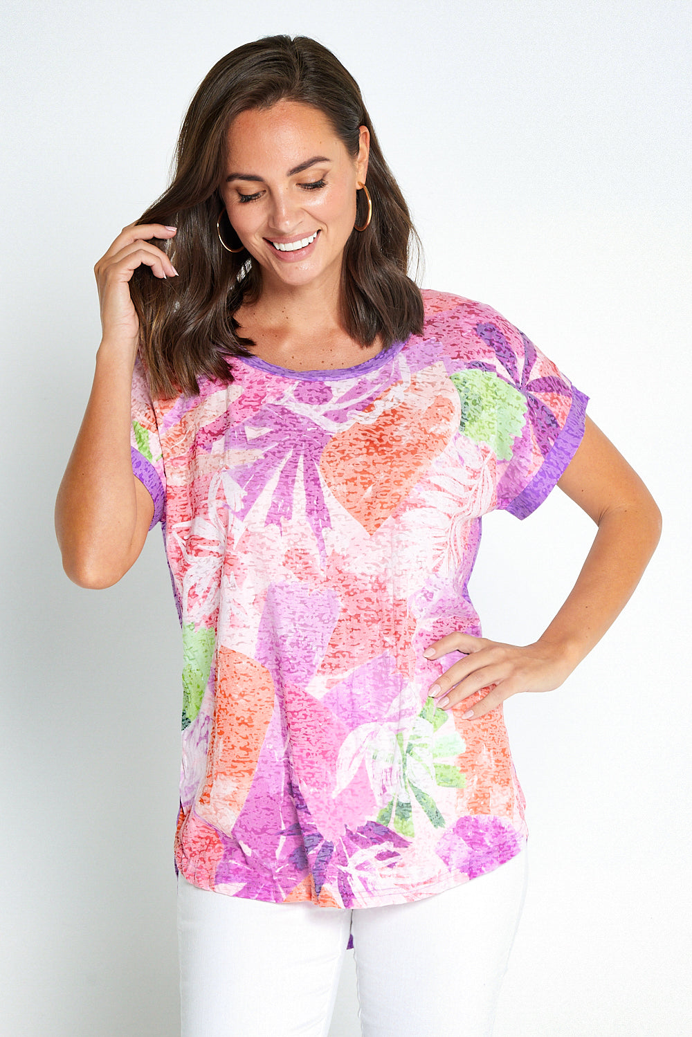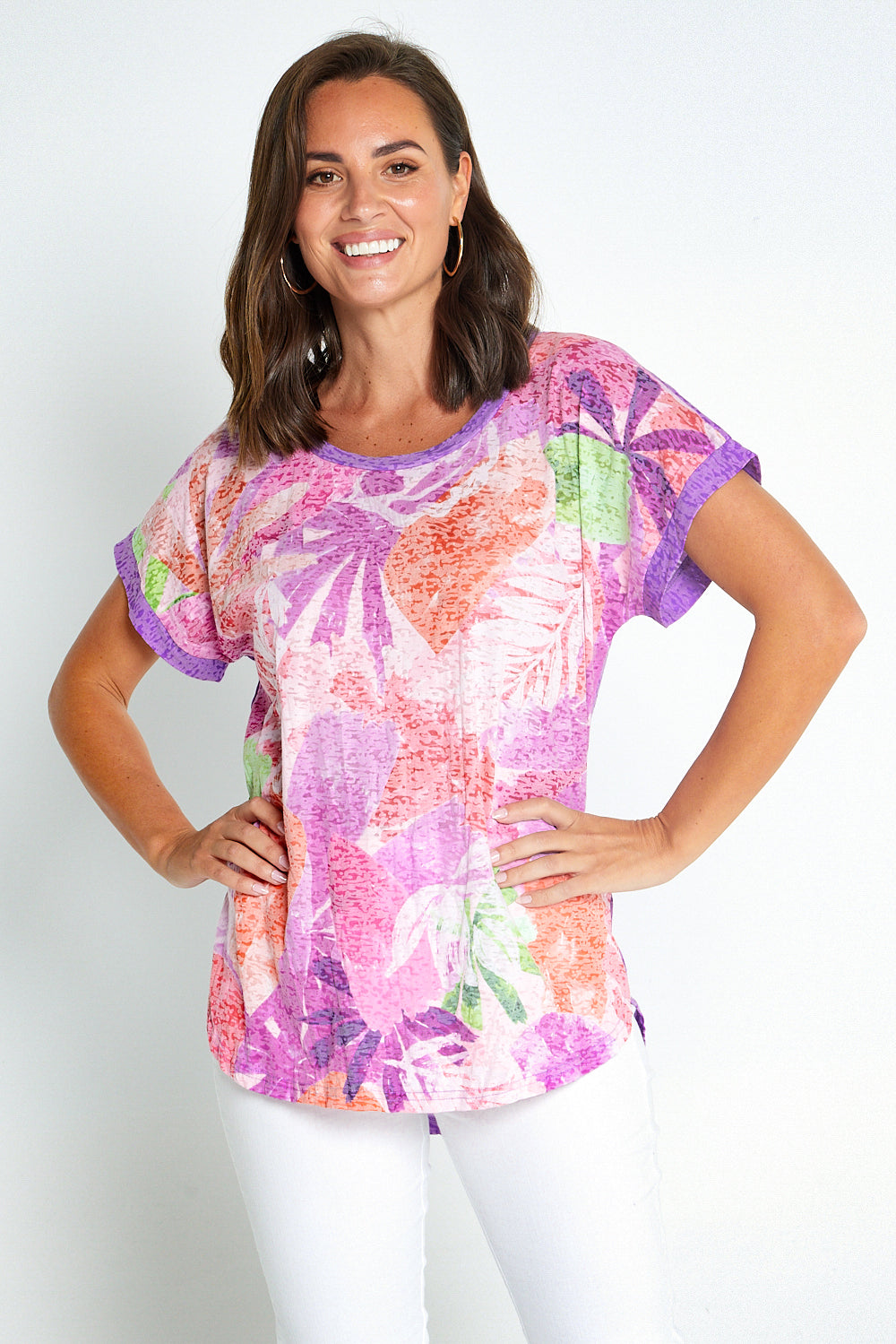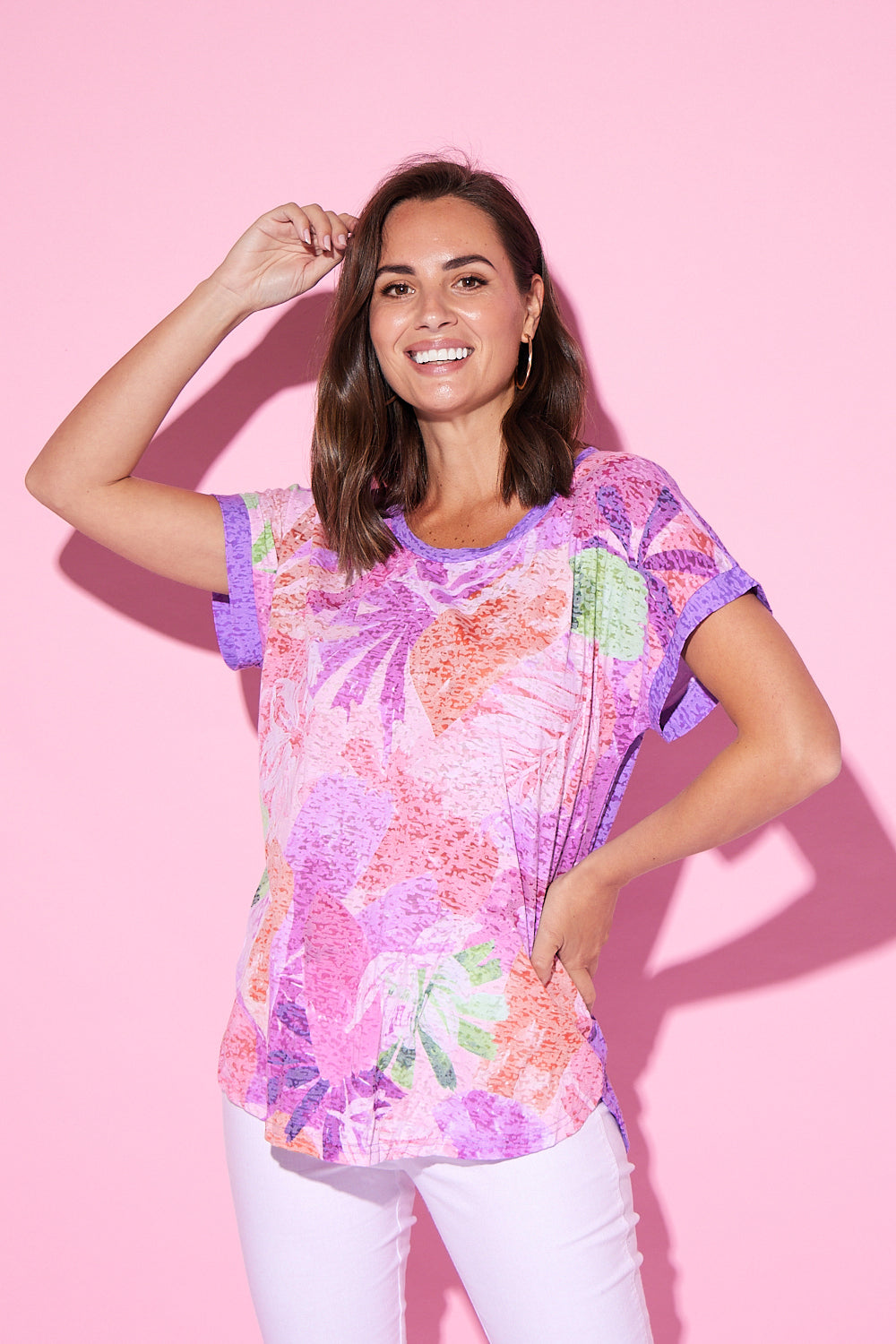 Nadia Burnout Tee - Lavender Abstract Tropical Print