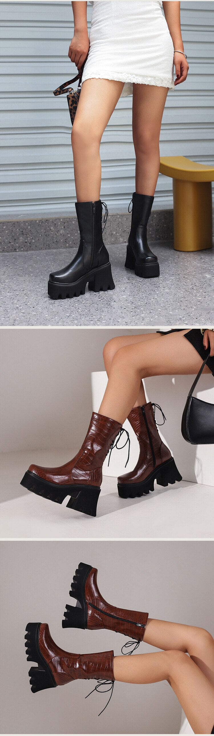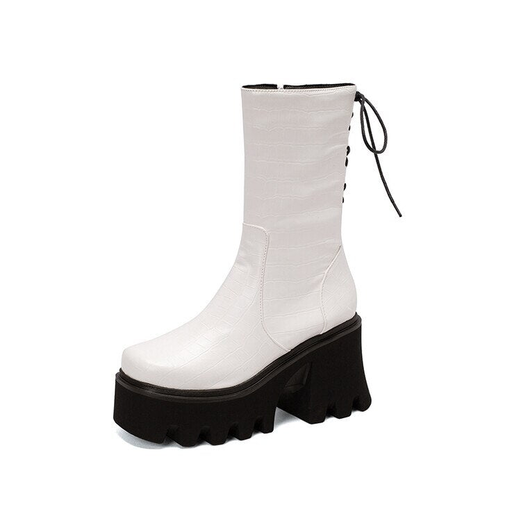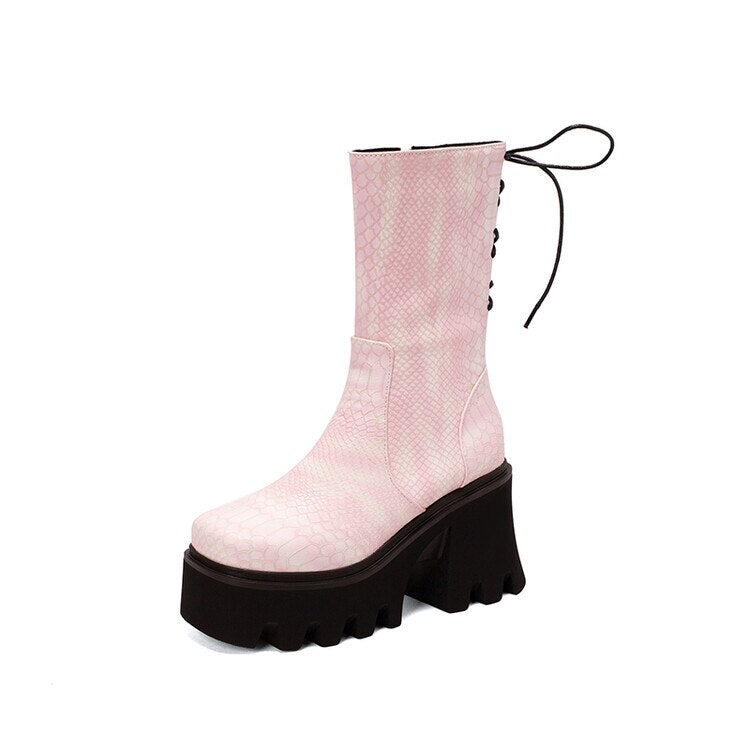 You will be stylish and comfortable in these fun and fashion boots that are sure to become a staple in your summer wardrobe. Designed with a lace-up detail for a fashionable look that's sure to make a lasting impression. The high-top design with a chunky heel gives off a casual but edgy look that is perfect for any occasion. Pair them with shorts, skirts, or dresses for a stylish and versatile look.