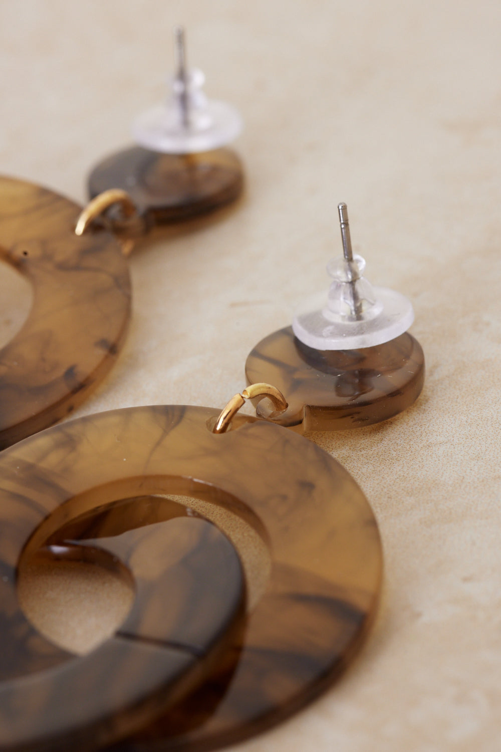 Make a bold statement with the Sable Link Drop Earrings in rich brown. These earrings feature interlocking circular links with a marbled effect, adding a unique and sophisticated touch to any outfit. Perfect for both casual and formal occasions, these lightweight earrings ensure comfort throughout the day. Enhance your jewellery collection with these eye-catching, versatile earrings.