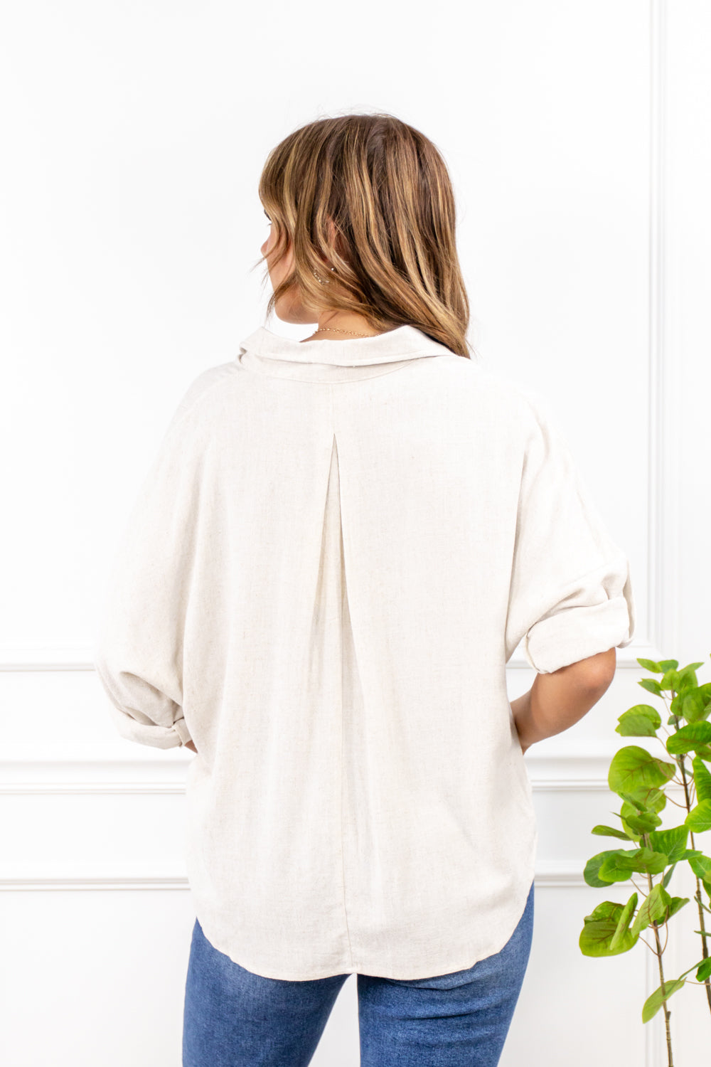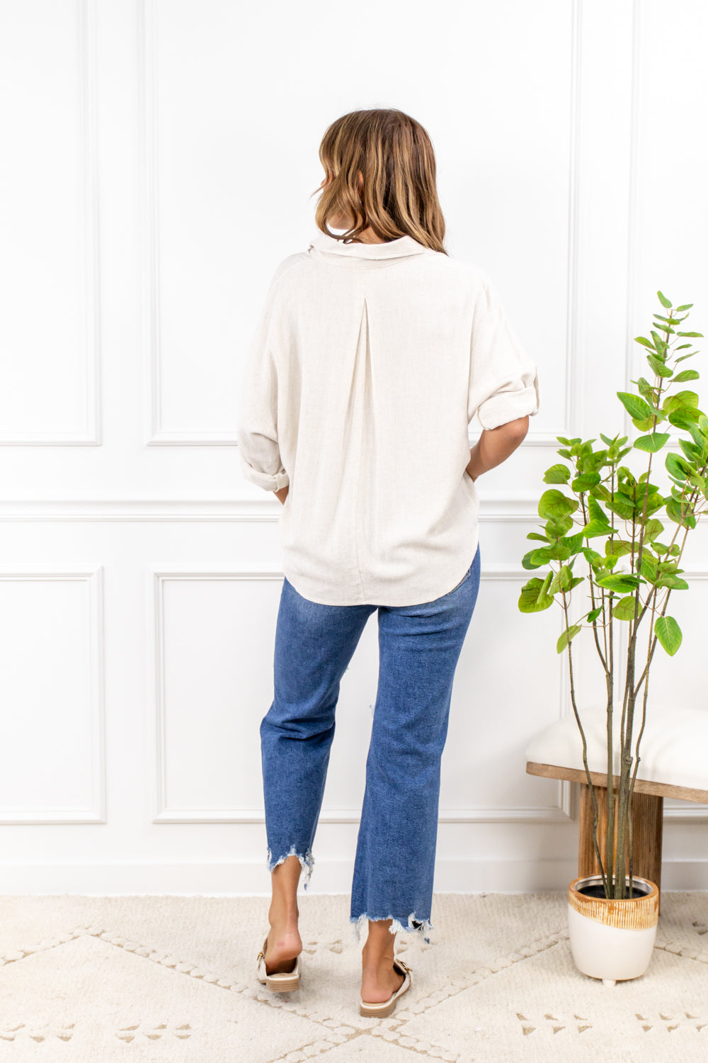 Perfect for a day running errands or a casual brunch, it pairs beautifully with your favorite jeans or shorts. Roll up the sleeves and tie the front for a laid-back vibe, or leave it loose over a tank for a chic layered look. The Ocean Air Relaxed Fit Linen Top brings easy elegance to your wardrobe for any season.