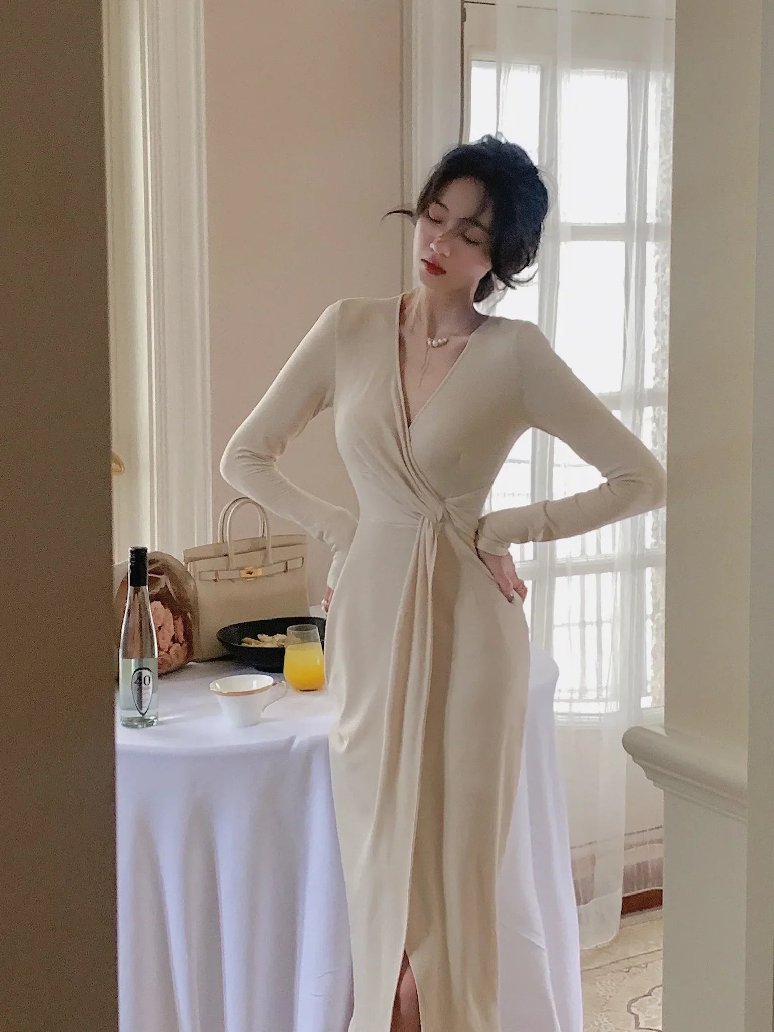 Get ready to turn heads in the On That Spring Day Midi Dress! With a slim fit and v-neckline, this dress is the perfect combination of sexy and sophisticated. Made with high-quality polyester and knitting fabric, it's not just stylish but also comfortable. Say goodbye to boring fashion and hello to this must-have dress!