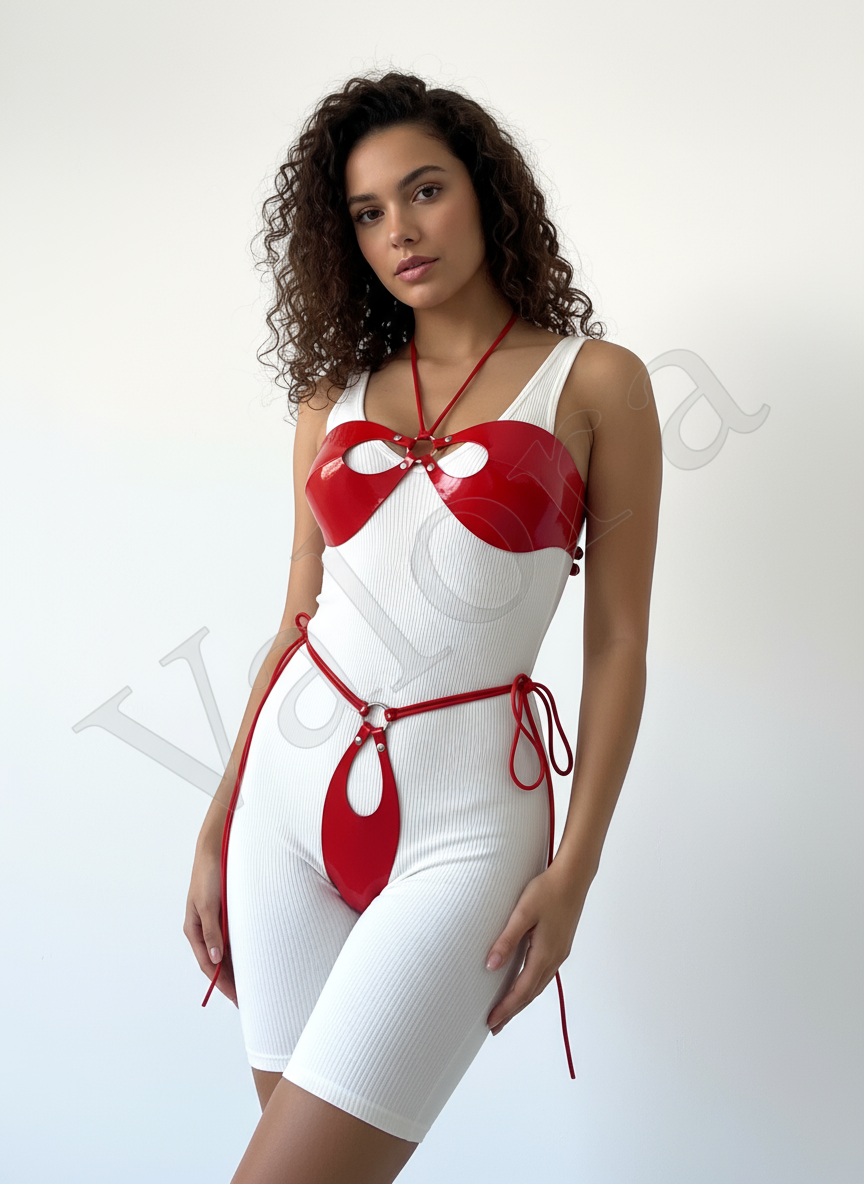 Unleash your daring side with this high-shine patent leather bra and thong set, designed to captivate with every glance. The sleek cutouts and tie-up details sculpt your curves while offering an adjustable, body-hugging fit. Made from premium materials for a glossy, second-skin finish, this set brings a bold edge to your intimate wardrobe.