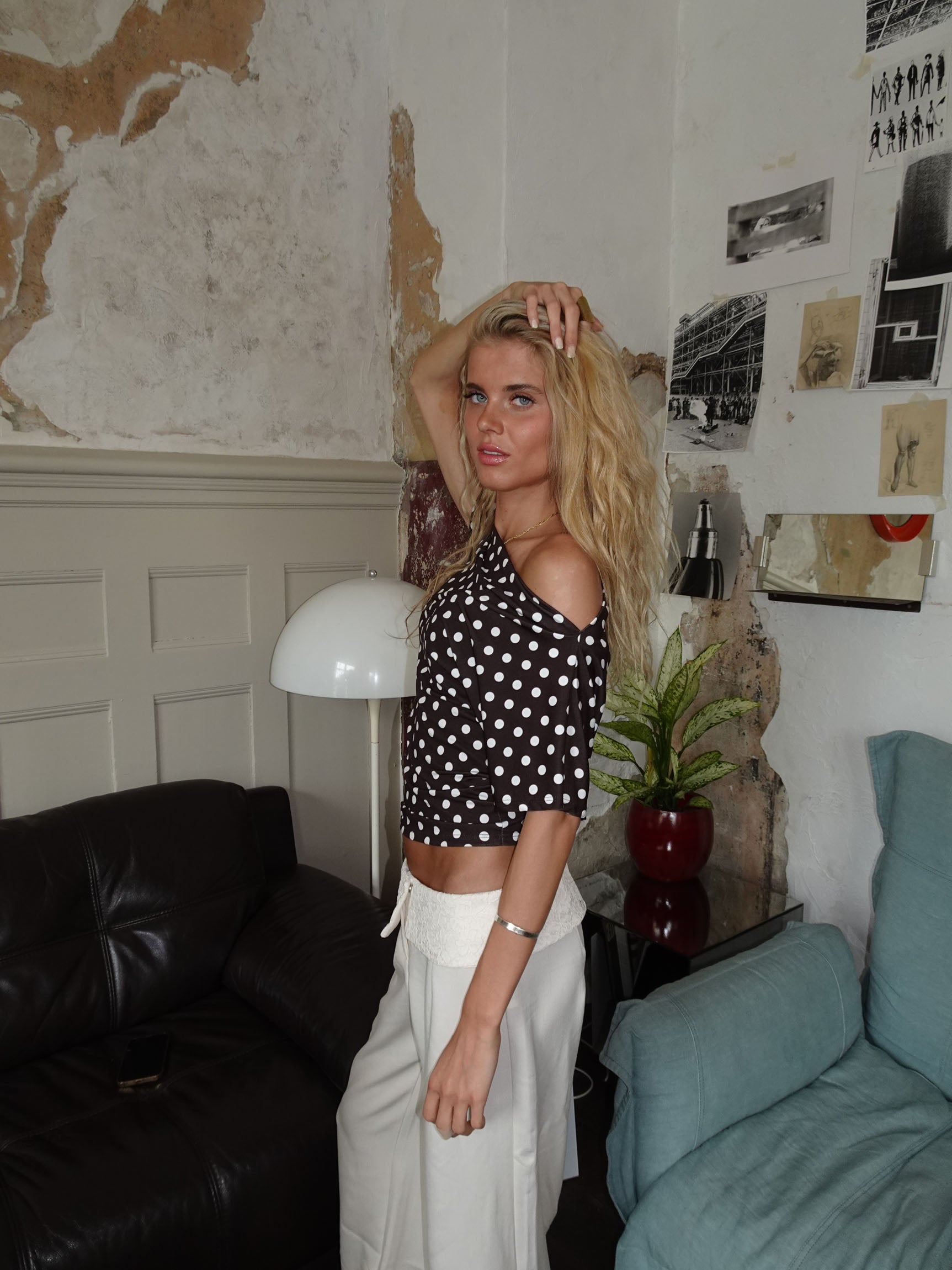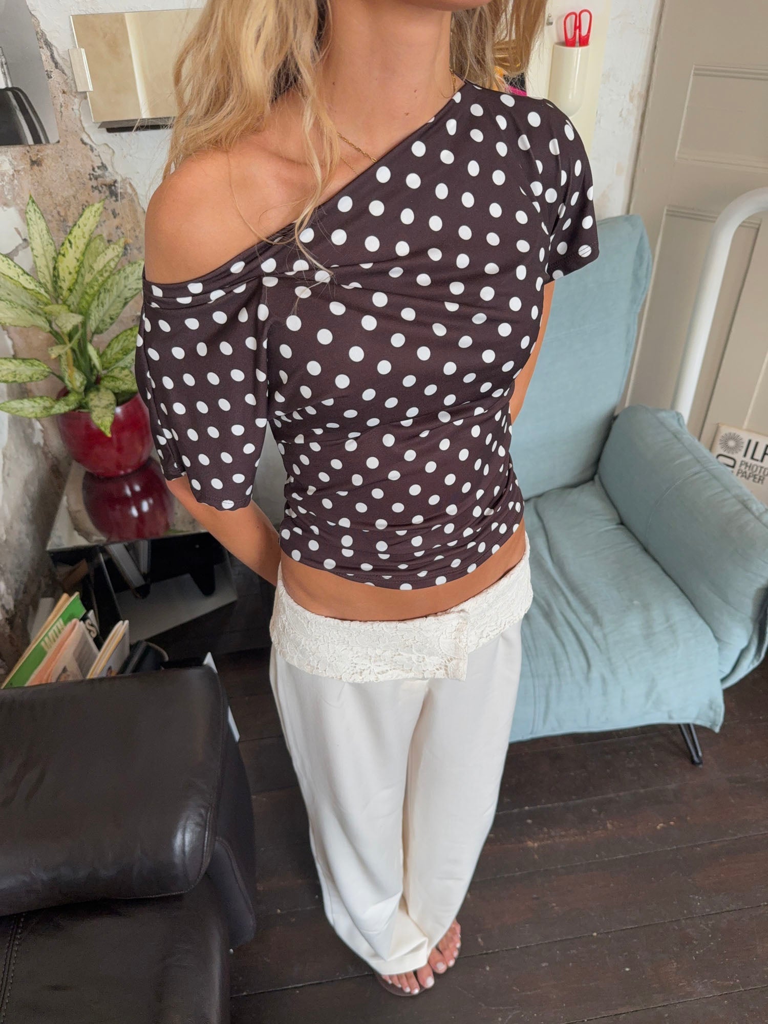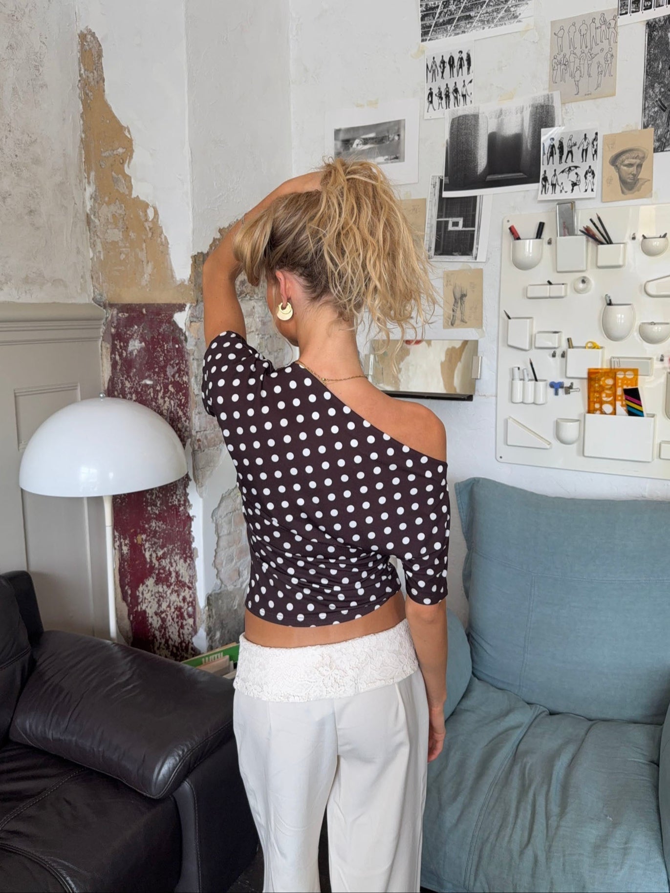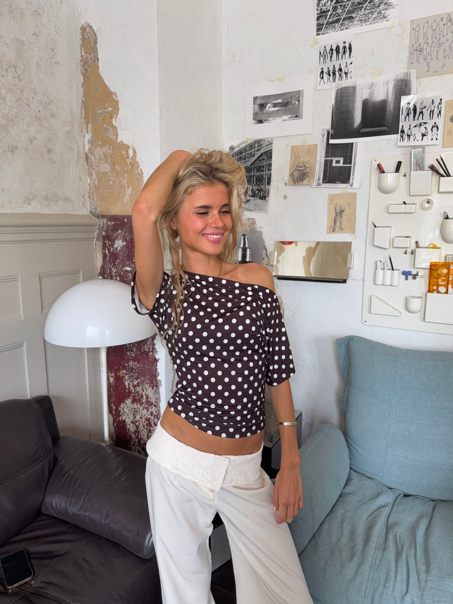 Polka Dots Florine fitted T-Shirt – Brown/white