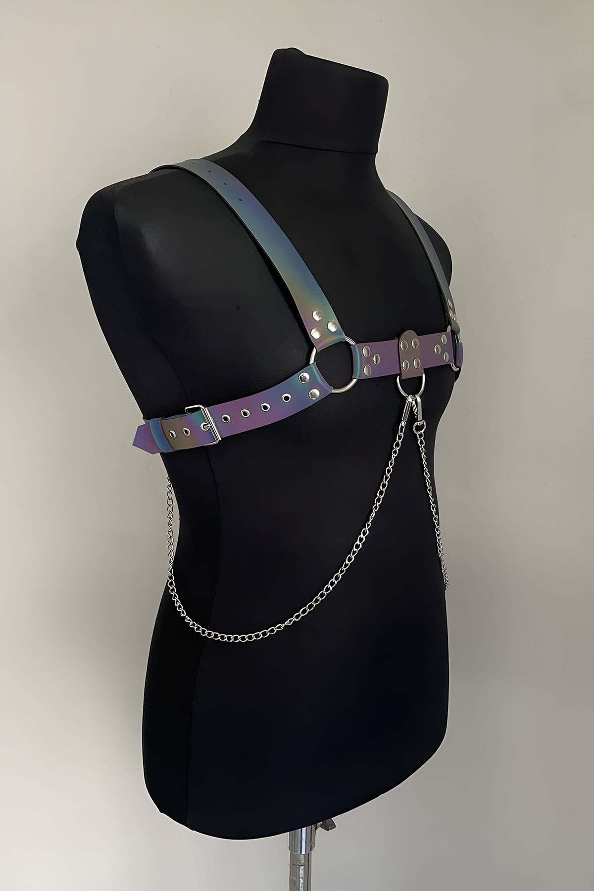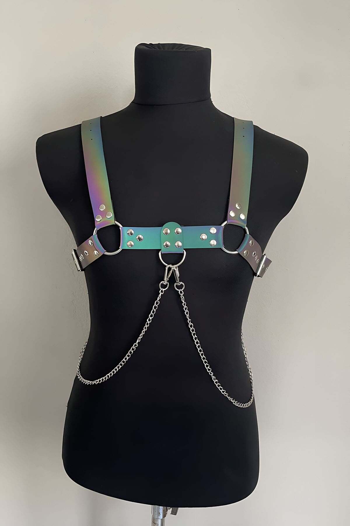 Rainbow Reflective (Glow in the Dark) Stylish Men's Chest Harness with Chain Detail, Reflective Clubwear