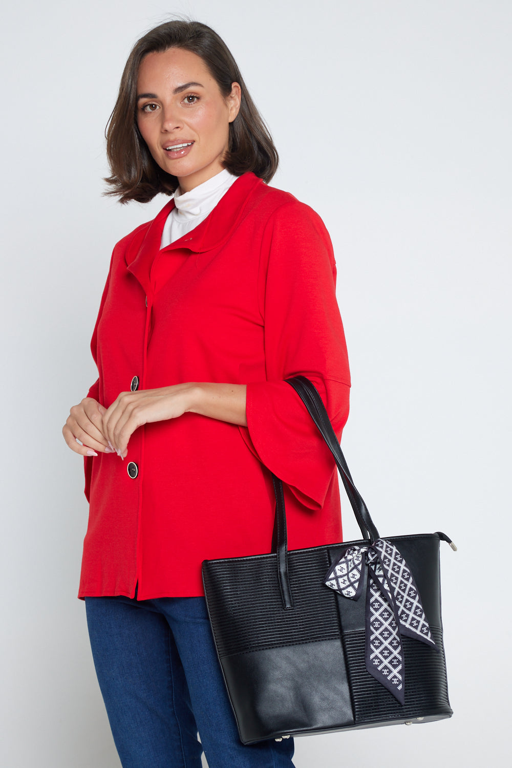 • Decorative scarf detail for added style