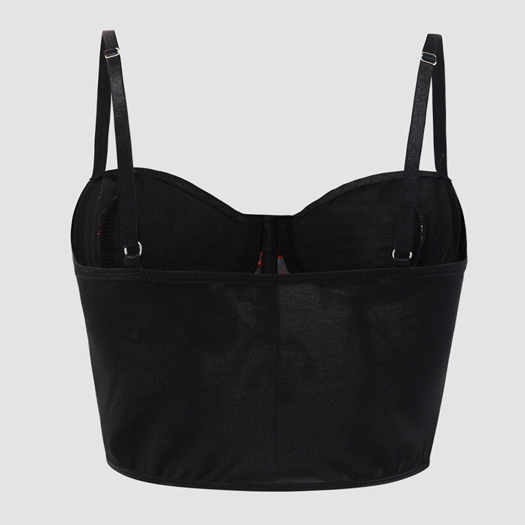 Romantic Floral Embroidered Sheer Mesh Cropped Corset Top - Black