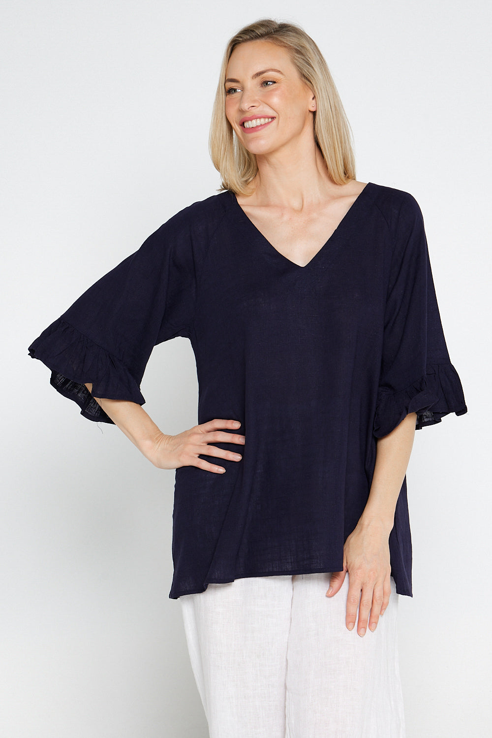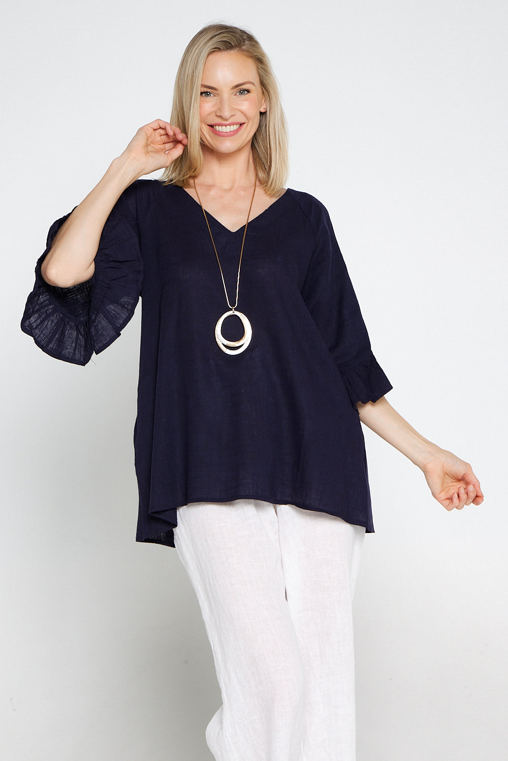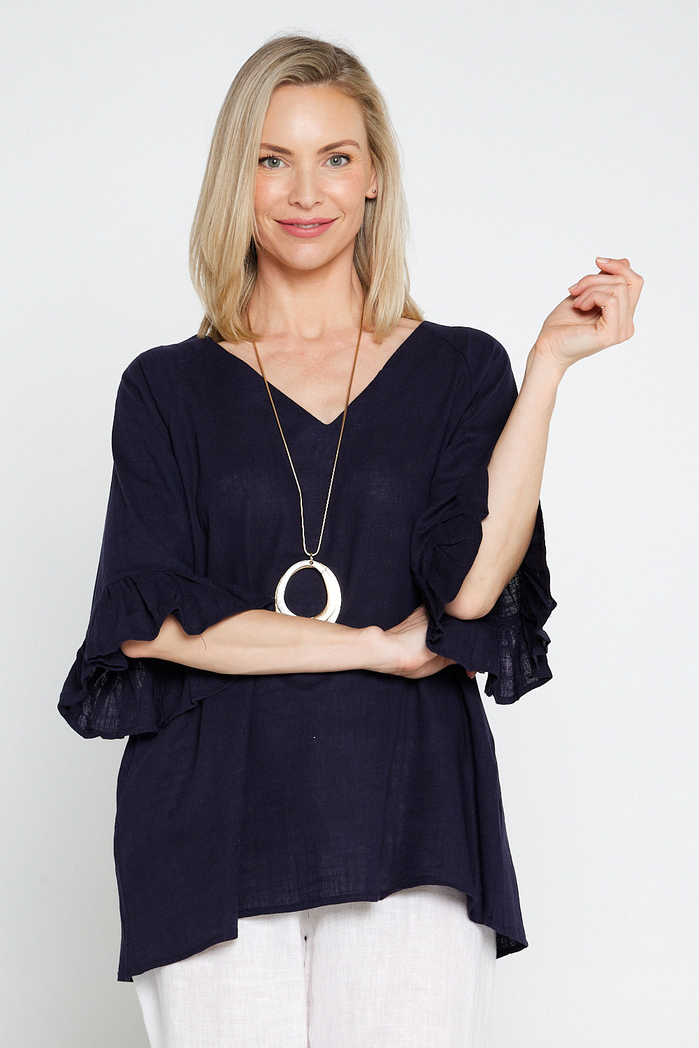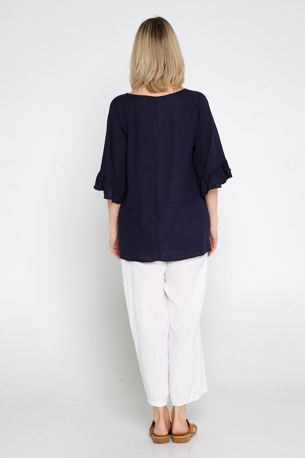 The beautifully feminine Samar Top now comes in a timeless and versatile shade of navy.