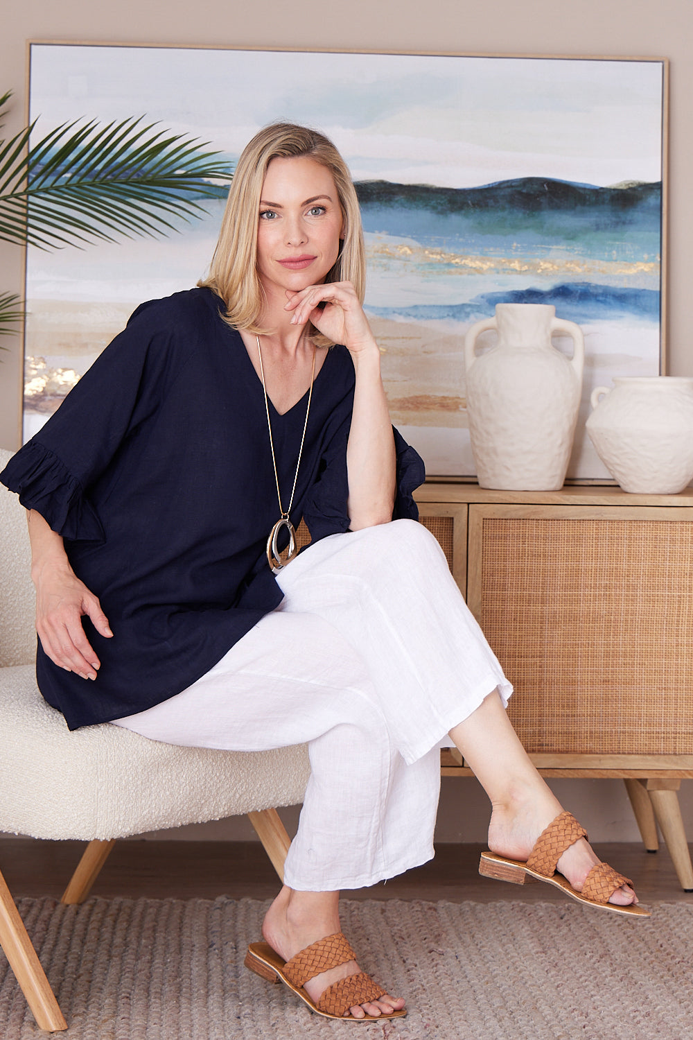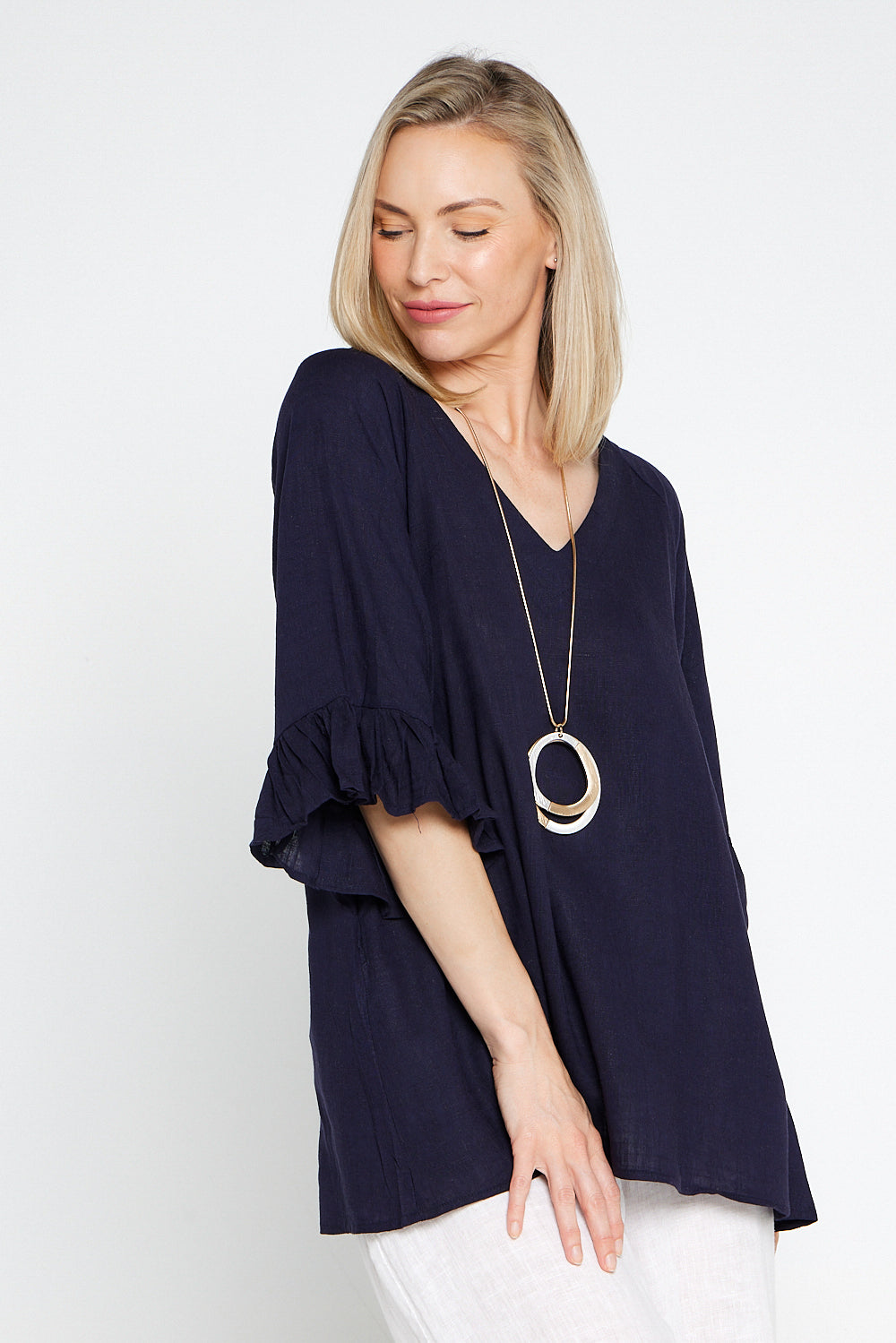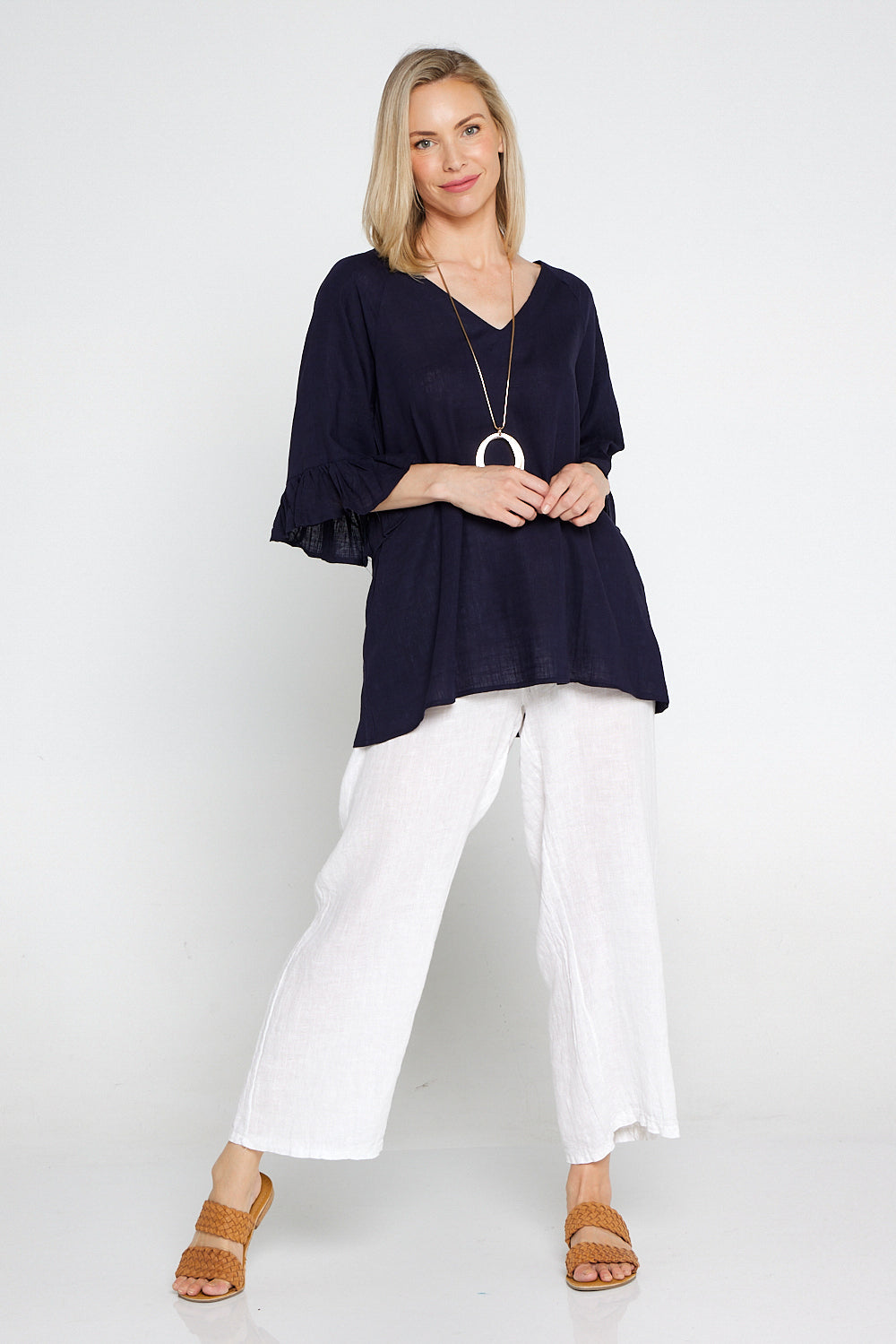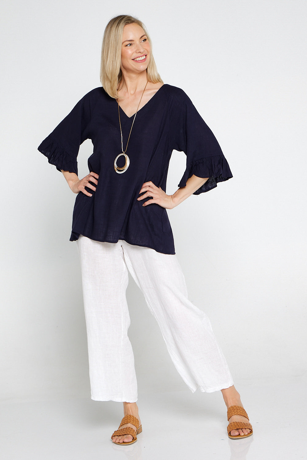 The beautifully feminine Samar Top now comes in a timeless and versatile shade of navy.