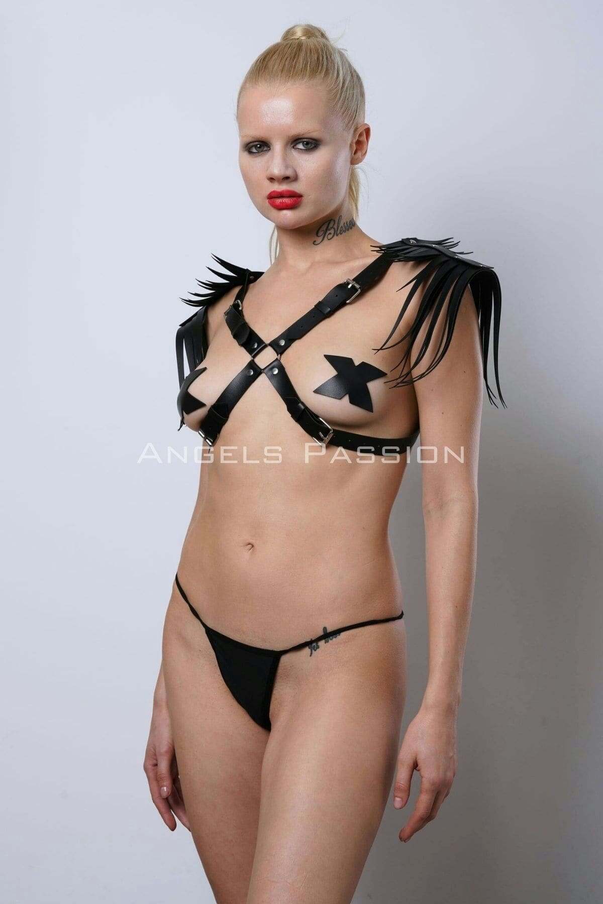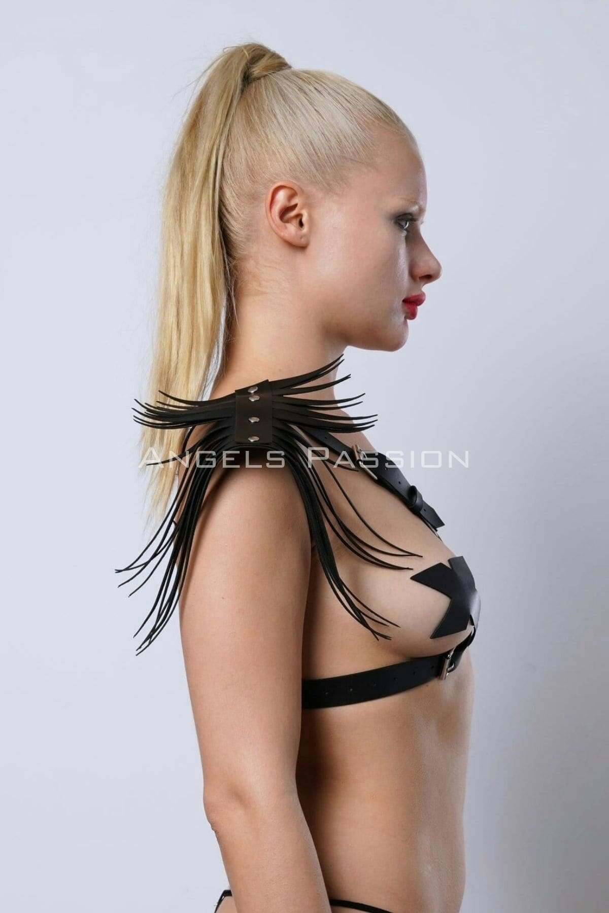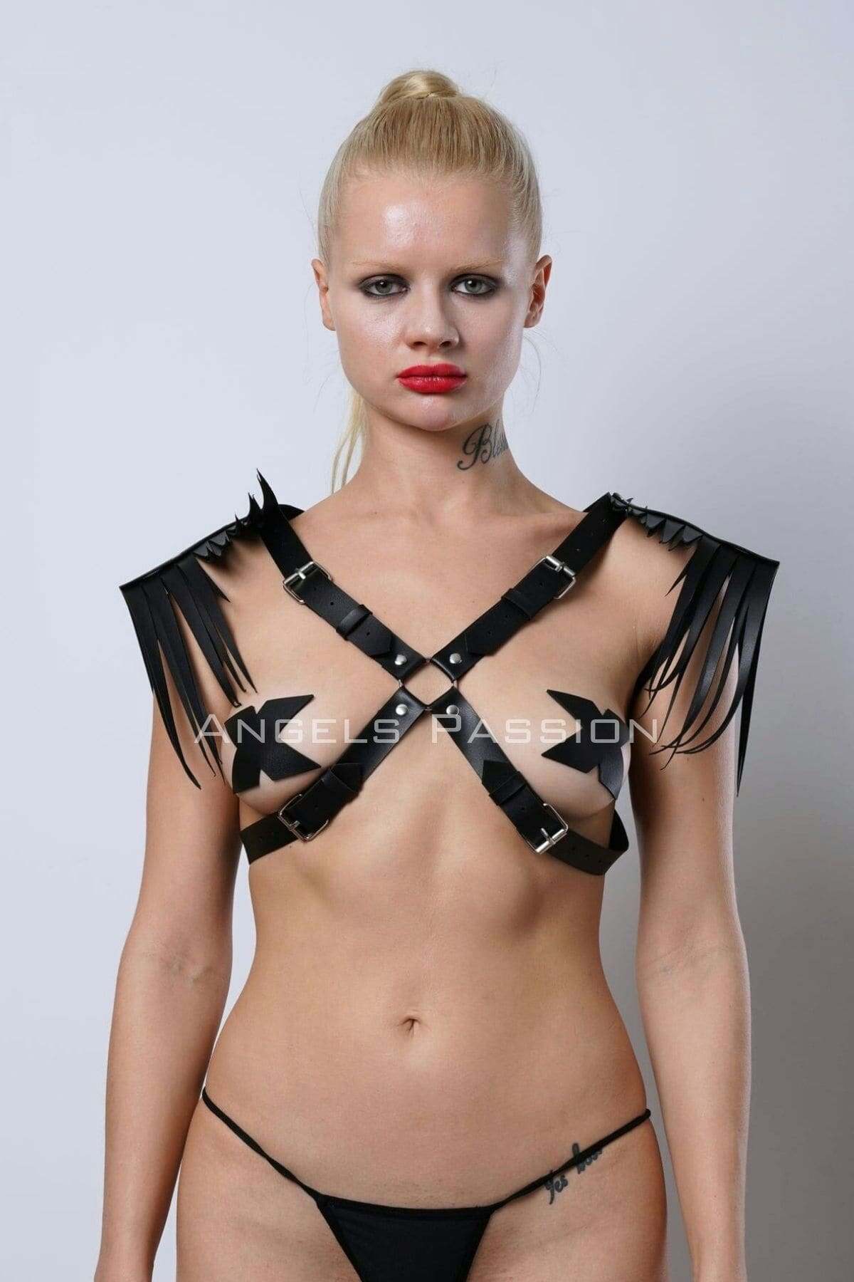 Shoulder Tassel Chest Harness, Leather Tassel Shoulder Harness