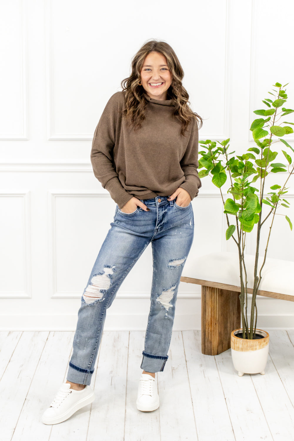 This cowl neck sweater offers both comfort and style, making it a versatile addition to your wardrobe. The soft ribbed knit fabric feels luxurious against your skin, while the relaxed fit and hip-length hem create an effortless, flattering silhouette. The long sleeves provide extra warmth, perfect for cozying up on chilly days.