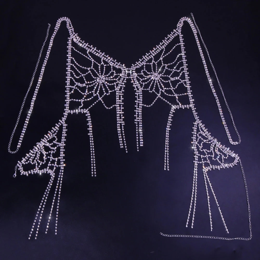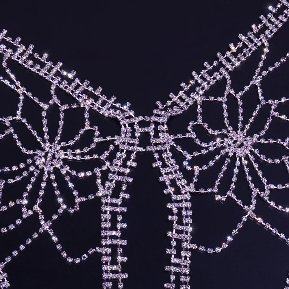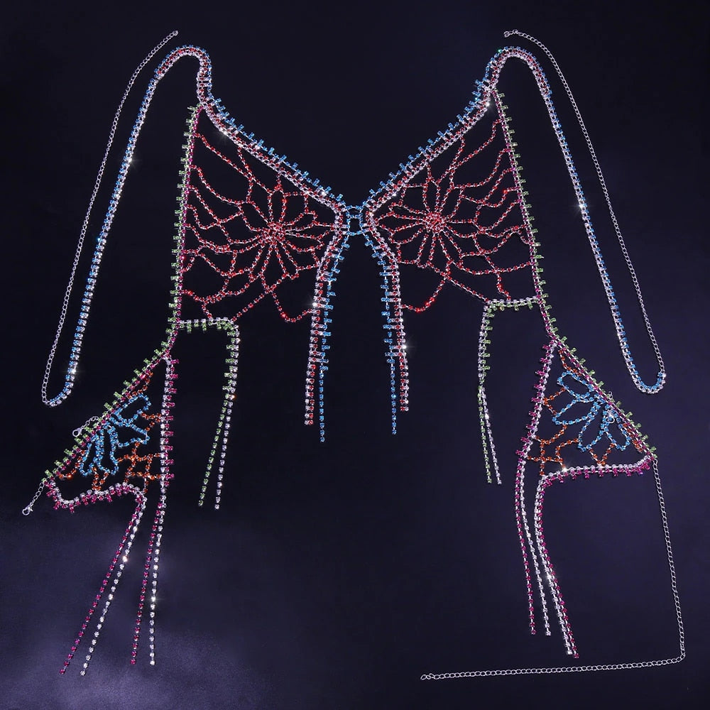 This is a cute and beautiful piece of bra body jewelry. It is made of high-quality copper that is adorned with rhinestones. The cute floral cup and tassel design give a fun festive look.