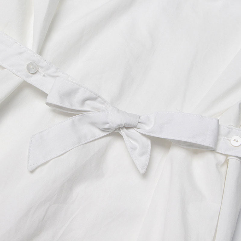 Classic shirt with so many details that we love! This season. meet our new designer shirt collection to update your style. The white shirt is in a longline silhouette with a chic pointed collar. long sleeves and a row of buttons to the front. The braided design makes it possible to distinguish your own personalized style from others. The detachable straps on the back allow you to sash and define your waist. Keep the look easy and casual with biker shorts and trainers for a model off-duty look.