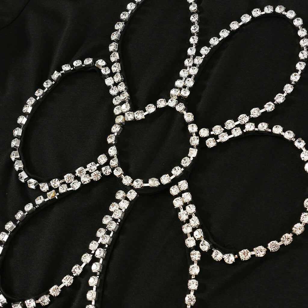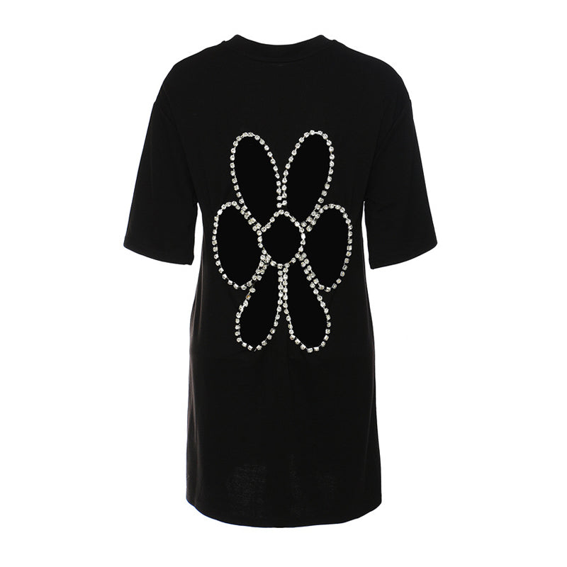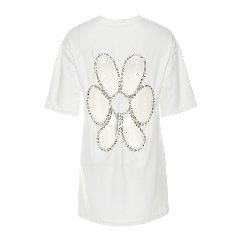 Stylish Crystal Embellished Floral CutOut Short Sleeve Relaxed T Shirt