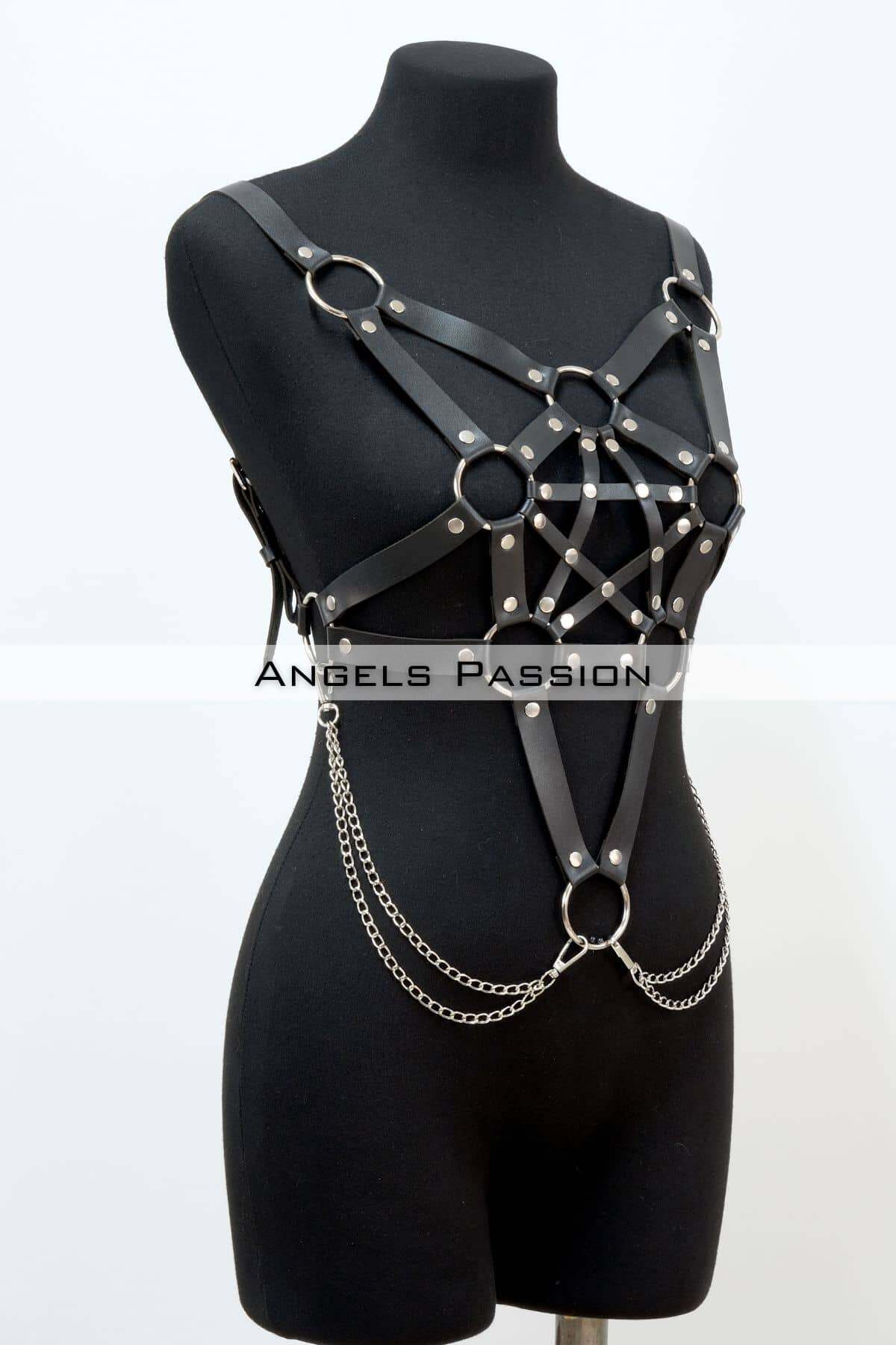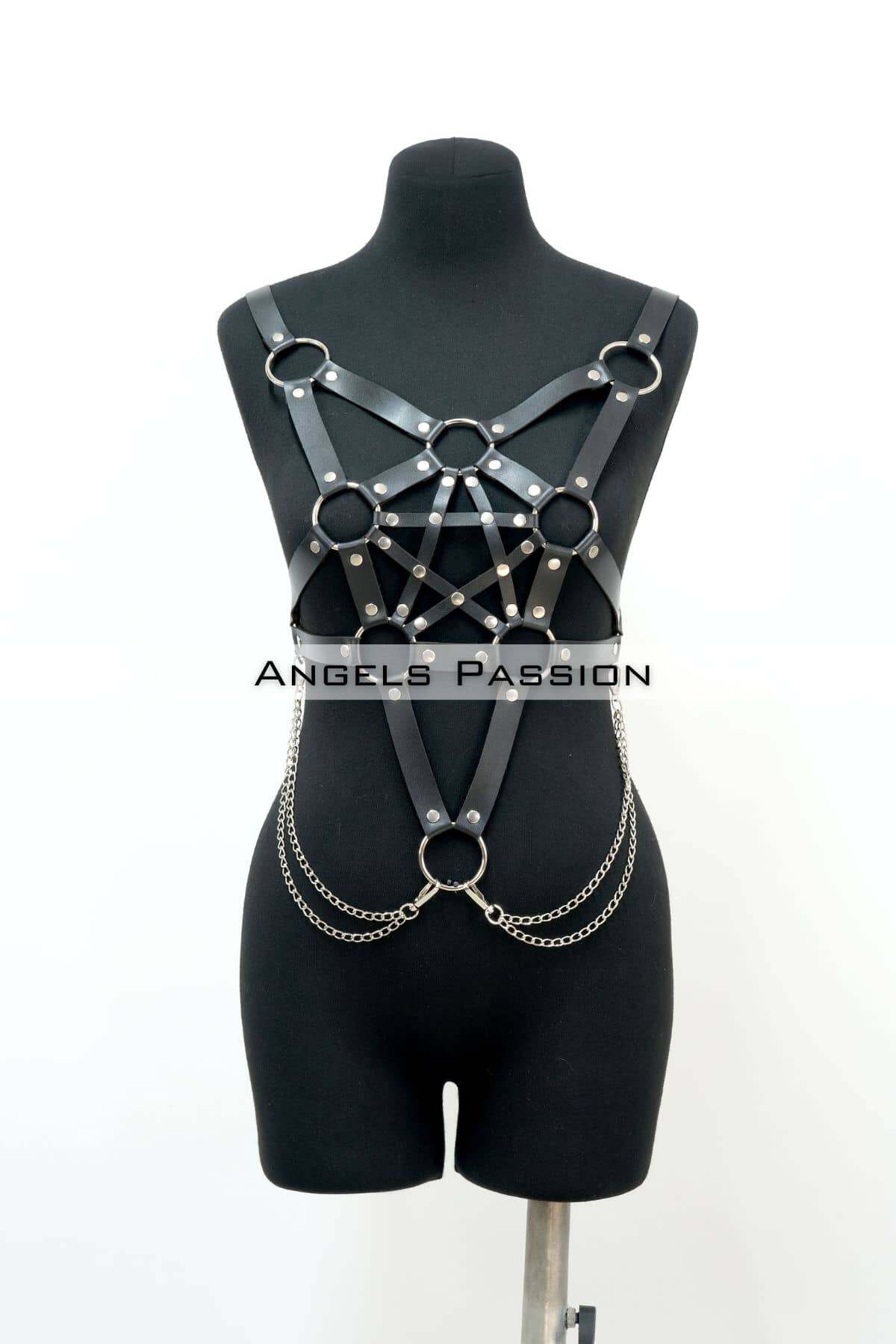 Stylish Leather Chest Harness with Chain Detail, Bustier Harness, Leather Chest Harness