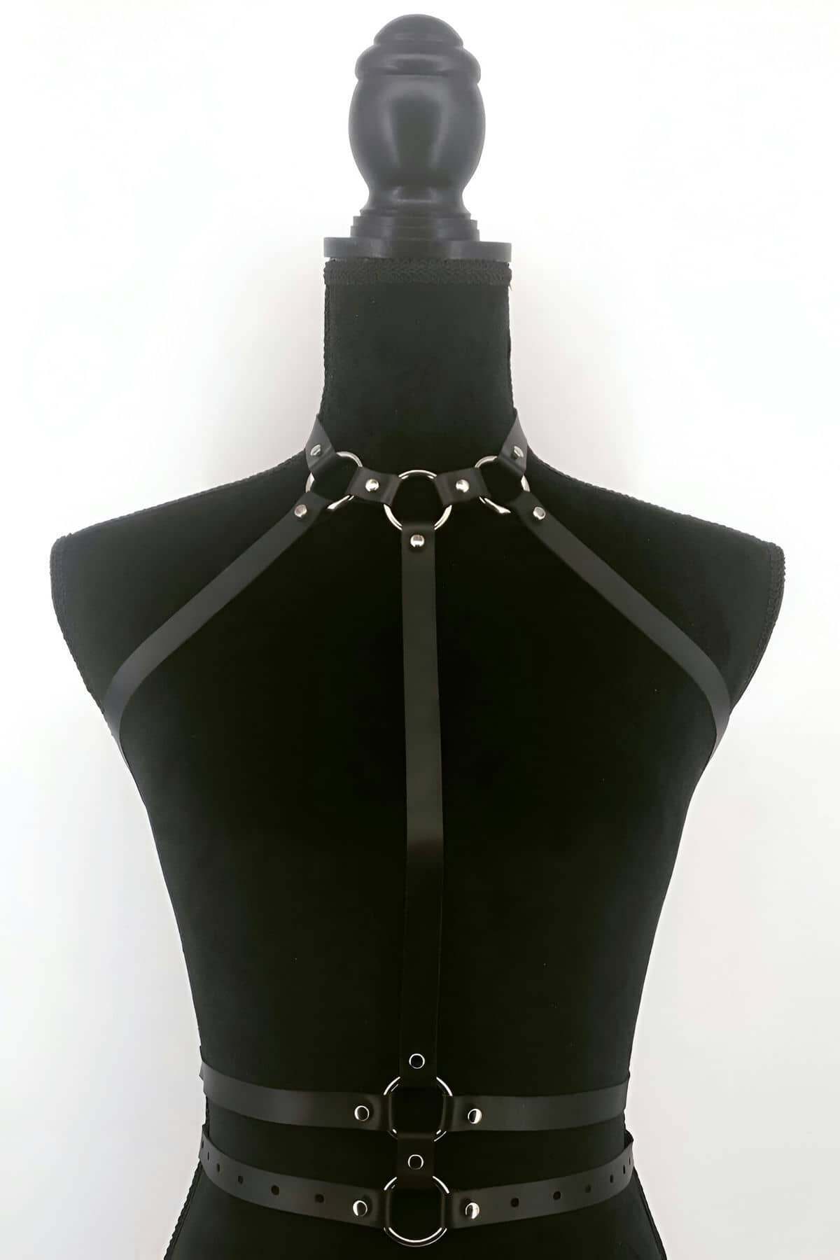 Stylish Leather Harness with Collar and Waist Detail